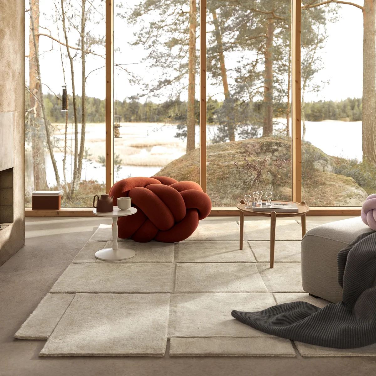 Knot XL von Ragnheidur Sigursdottir für Design House Stockholm ist eine Fantasieform, die ihre Inspiration aus der Herstellung von Knoten und dem Stricken bezieht und skulpturale Formen anstelle von gewöhnlichen Mustern erforscht. Das ursprüngliche Knot-Kissen entstand zum Teil aus dem Versuch, Beine für einen Teddybären herzustellen, anstatt sie zu häkeln, und wurde zu einem heimeligen Kunstwerk. Die XL-Version ist sogar noch mehr: eine neue Sitzgelegenheit, die sich jedem anpasst, und eine perfekte Möglichkeit, auf gleicher Höhe mit den ganz kleinen Kindern zu sitzen.