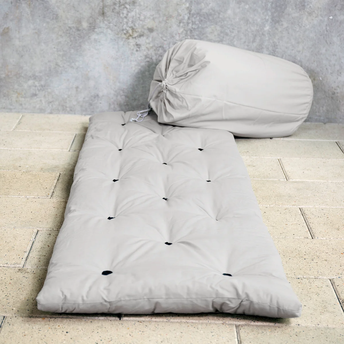 Das „Bed In A Bag“ von Karup Design ist, wie der Name schon sagt, ein Bett im Beutel. Es ist ein Ersatzbett, welches zusammengerollt in einen Beutel passt und ausgebreitet werden kann, wenn Übernachtungsgäste zu Besuch sind. Bed In A Bag ist eine Matratze, welche die klassische Luftmatratze ersetzt. Sie muss zudem nicht mühselig aufgeblasen werden und bietet besseren Liegekomfort.