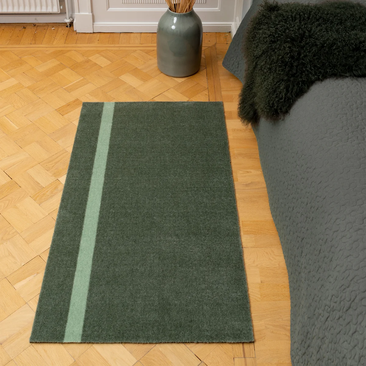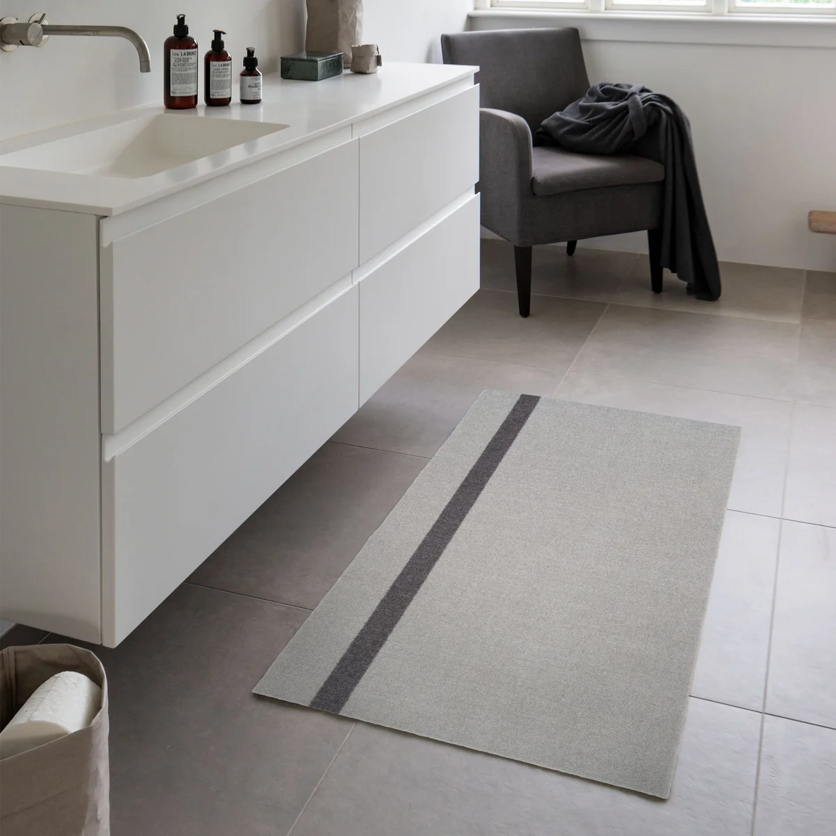 Der Stripes Vertical Läufer ist in unterschiedlichen Grössen und Farben erhältlich. Er lässt sich simpel durch Staubsaugen, Spülen mit Wasser oder in der Waschmaschine bei maximal 30 Grad säubern.