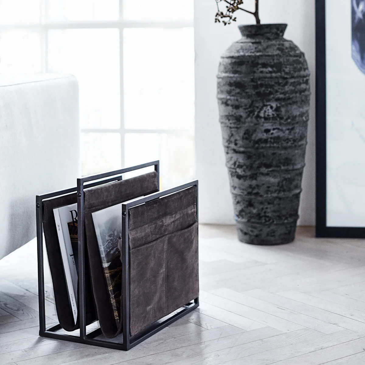 Stilvoller Zeitungshalter aus Wildleder und Eisen