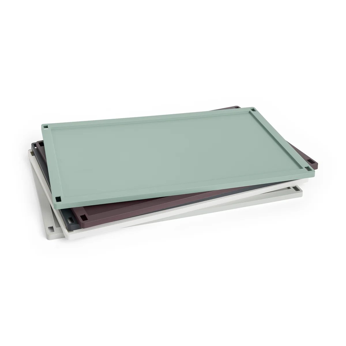 Die Kunststoffdeckel für Colour Crate von HAY sind äusserst praktische Deckel, die sich ideal auf die Colour Crate Körbe ablegen lassen. Die Deckel ermöglichen, dass die Kisten aufeinander gestapelt werden können. Gleichzeitig können so die aufbewahrten Inhalte versteckt werden. Die Deckel werden aus pulverbeschichtetem Stahl oder aus 100 % recyceltem Kunststoff gefertigt und lassen sich farblich an die Kisten anpassen. Sie können ganz nach Bedarf im gesamten Haushalt integriert werden.