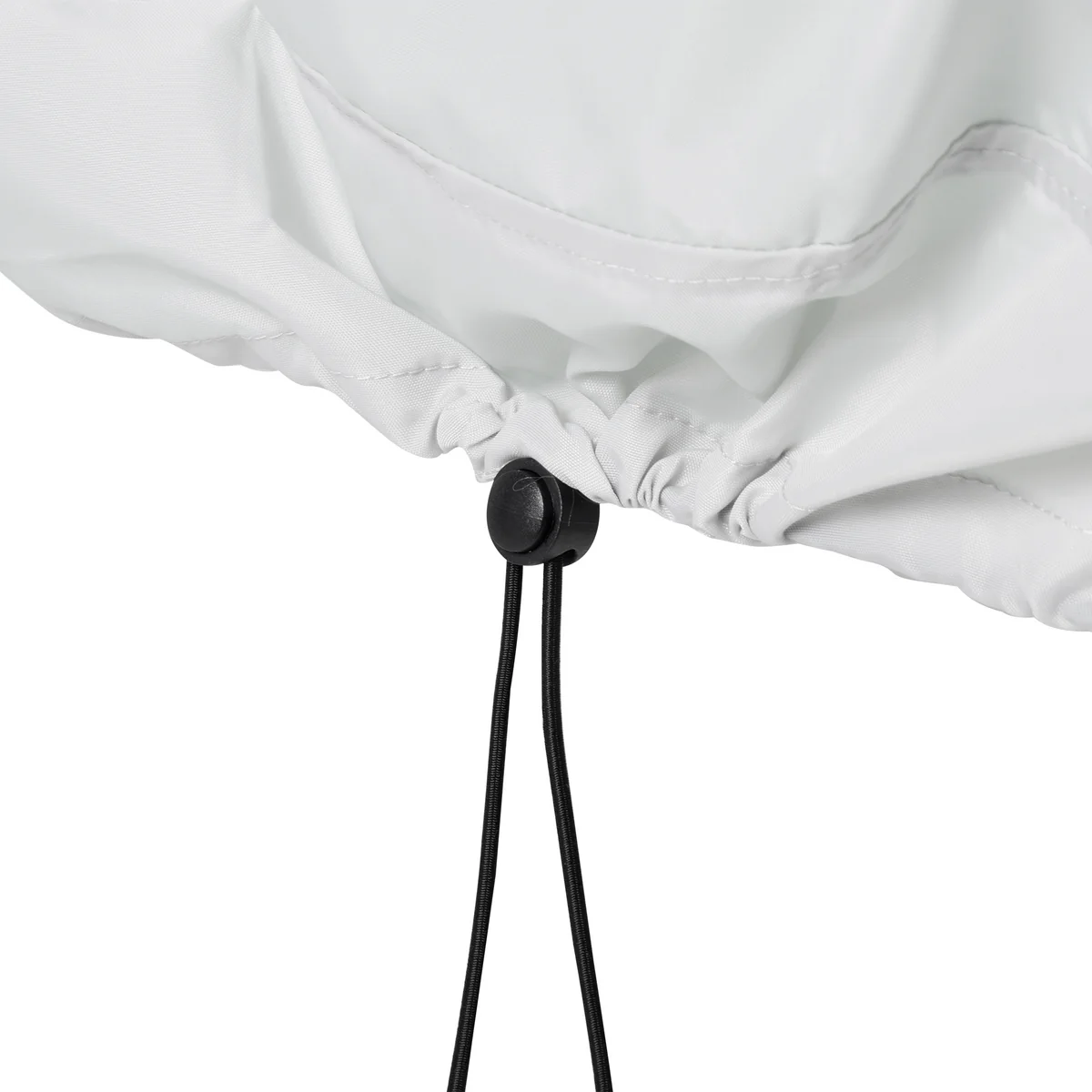 Ein passender Aufbewahrungsbeutel ist an der Hülle festgenäht und kann nicht verloren gehen. Und auch die Ösen und Gummibänder zur sicheren Befestigung der Schutzhülle sind praktisch, damit sie nicht beim ersten Windstoss davonweht.