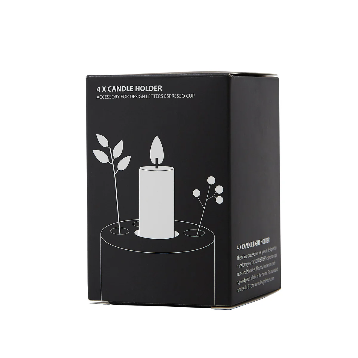 Die Kerzenhalterung für die AJ Mini-Becher von Design Letters ist ein tolles und praktisches Zubehör. Mit der Kerzenhalterung können in die AJ Mini-Becher auch gewöhnliche Stabkerzen gesteckt werden. So werden die Becher im Handumdrehen in Kerzenständer verwandelt. Das Besondere an der Kerzenhalterung ist, dass sie nicht nur über eine Aussparung für die Kerze verfügt sondern ausserdem über drei weitere. Durch diese Löcher können kleine Äste, Pflanzen und vieles mehr zur Dekoration gesteckt werden.