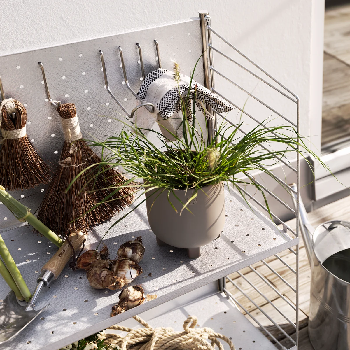 Mit den Haken für das Outdoor Regal von String lässt sich das Regalsystem für Draussen noch individueller gestalten! Das Outdoor Regal von String ist ein modulares Regalsystem, das aus Edelstahl gefertigt wird und damit 100% wetterfest ist. Seine robuste Herstellung wird durch das zeitlose Design ergänzt: Die perfekte Regal-Lösung für Terrasse und Balkon!