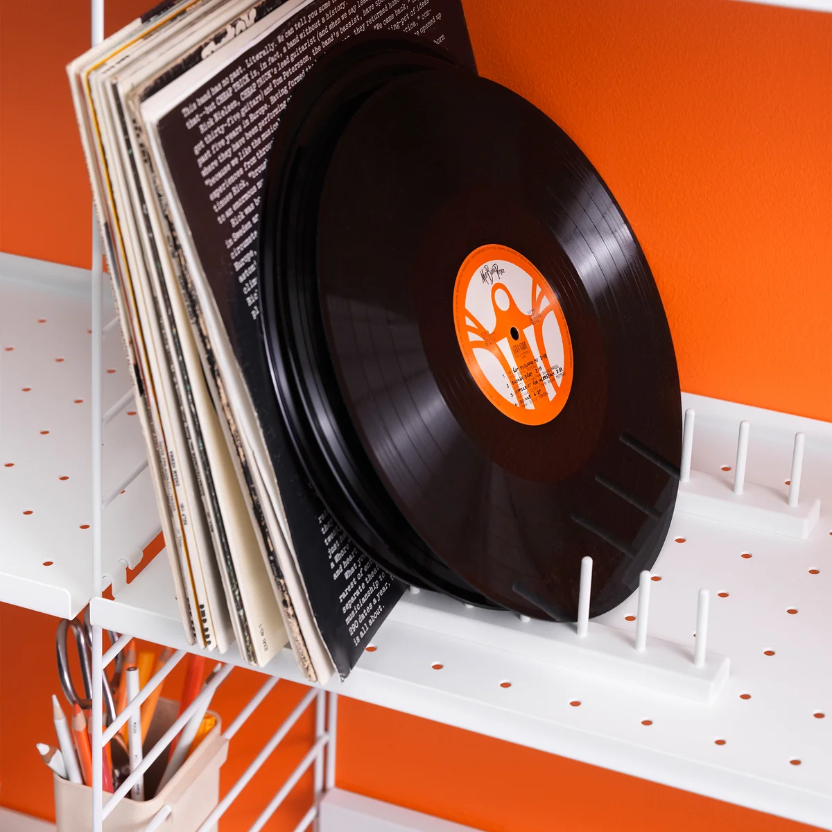 Der Plattenhalter von String passt ideal ins Pocket Regalsystem und ist in zwei verschiedenen Grössen erhältlich. Gefertigt aus pulverbeschichtetem Stahl und Aluminium und in mehreren gedeckten Farben verfügbar.