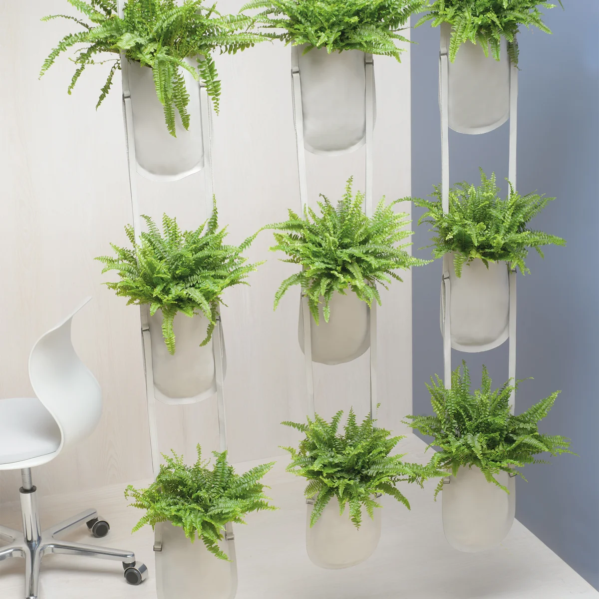 An Wänden oder Decken aufgehängt, setzen die innovativen Pflanztaschen von Authenics Akzente. Mehrere Taschen lassen sich zu dekorativen Arrangements verbinden und unterteilen als schwebende Wände grössere Räume: in Cafés und Restaurants, Büros, Lobbys, Messe- und Verkaufsräumen oder zuhause im Wintergarten, der Küche und im Wohnzimmer.