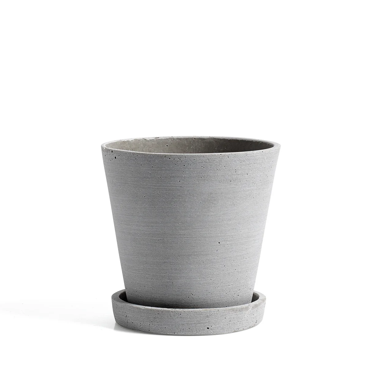 Der Blumentopf mit Untersetzer von HAY ist kompromisslos pragmatisch. Mit seiner klaren Form passt er überall hin, wo ein praktischer Blumentopf gebraucht wird.