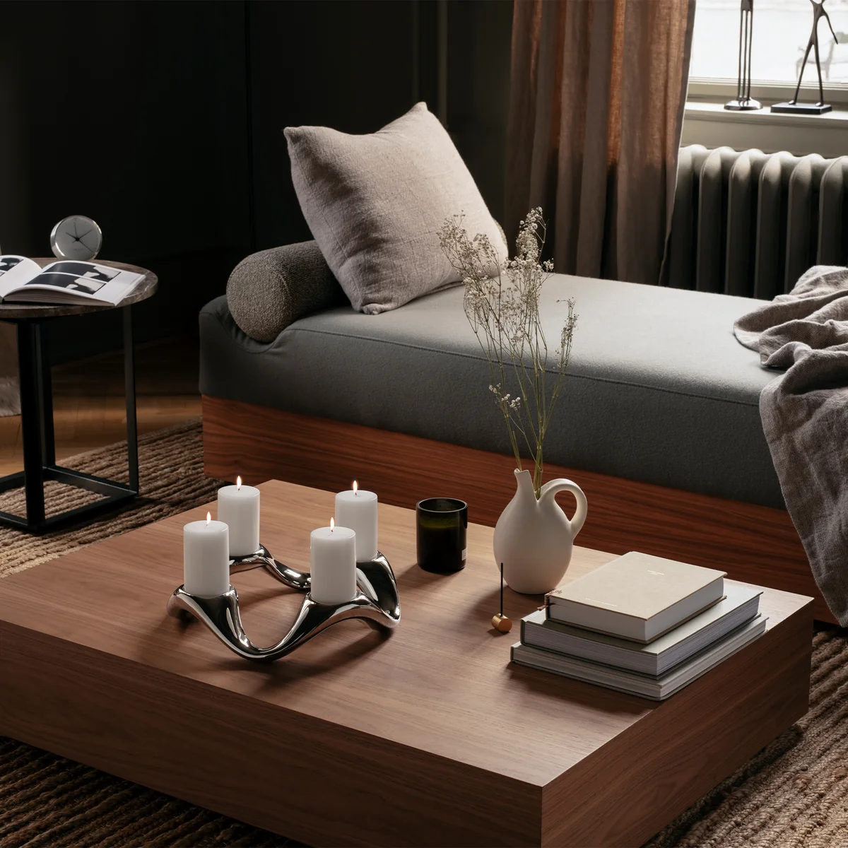 Der Cobra Kerzenhalter bietet Platz für vier Stumpfkerzen mit einem Durchmesser von jeweils 6 cm. Daher eignet er sich ideal für die Vorweihnachtszeit, um an jedem Advent eine weitere Kerze zu entzünden. Durch das zeitlose und edle Design ist der Kerzenhalter jedoch auch das ganze Jahr über ein modernes Wohnaccessoire.