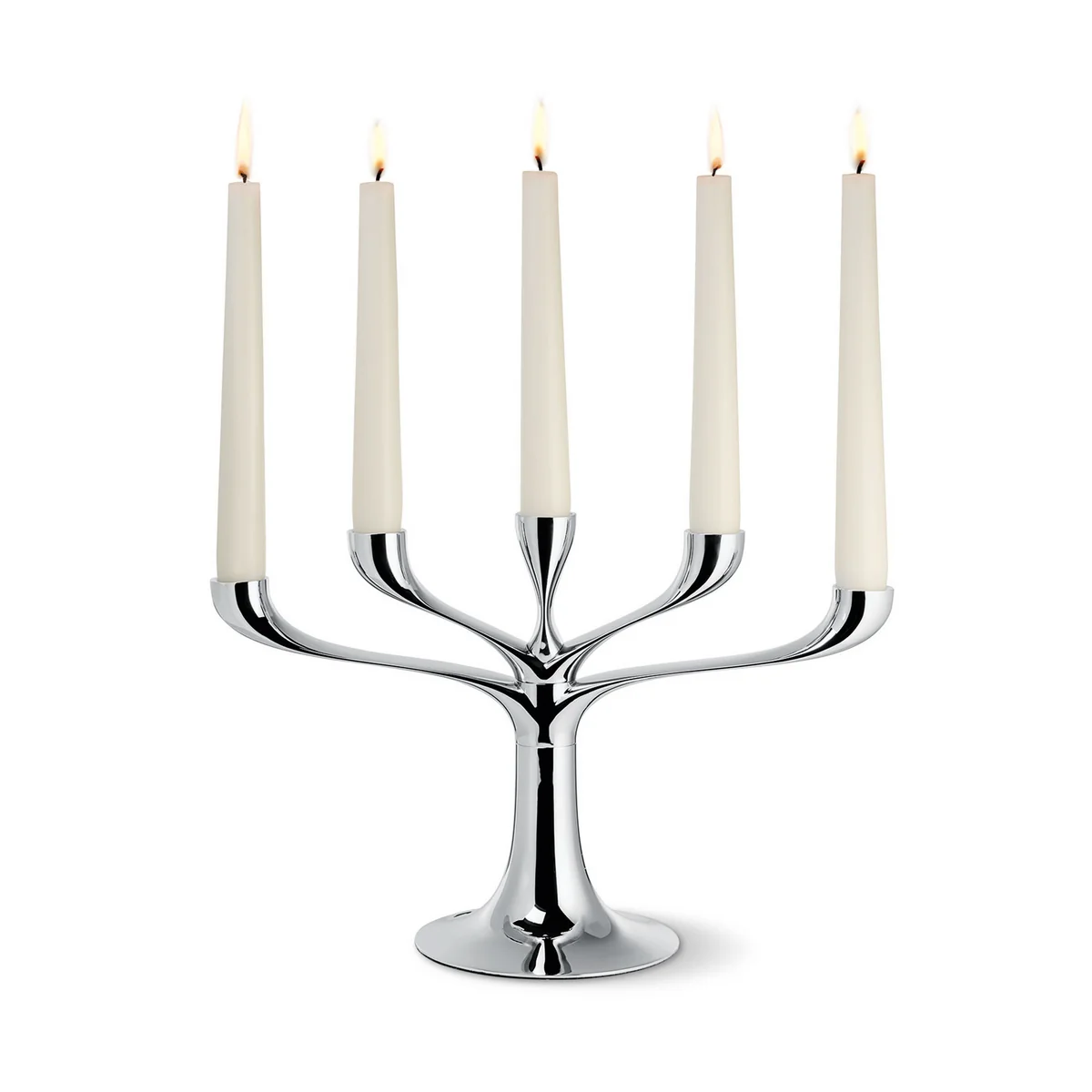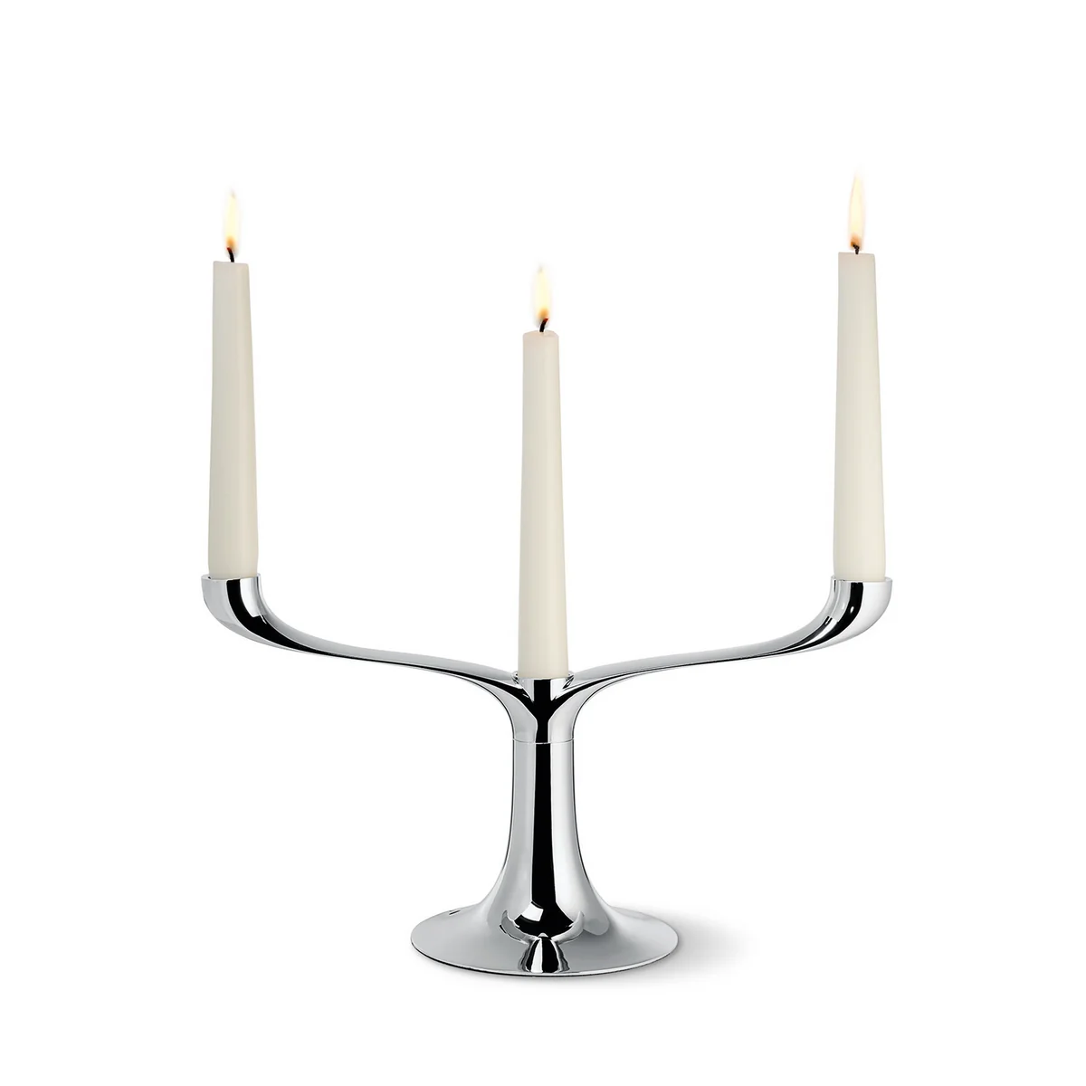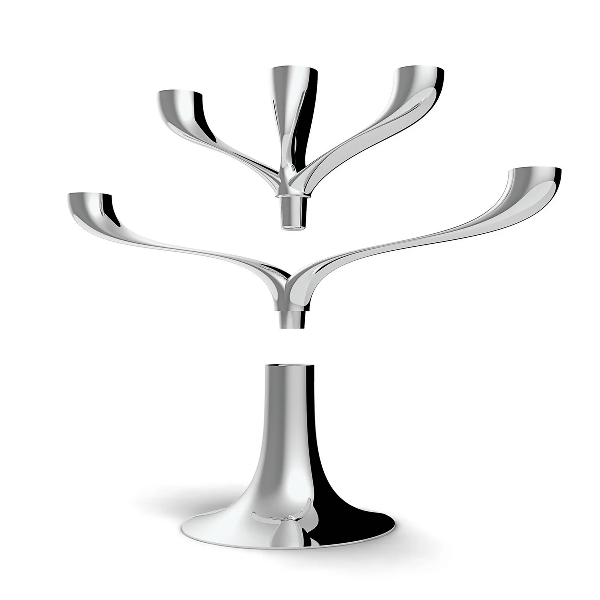 Der aus Metallguss hergestellte und anschliessend hochglanzpolierte Chrom-Kerzenständer besteht aus einer Basis, auf dem Aufsätze für drei oder für fünf Kerzen befestigt werden können. Somit kann der Kerzenhalter für die Adventszeit ebenso genutzt werden wie für gesellige Dinnerabende oder gemütliche Herbst-Tage.
