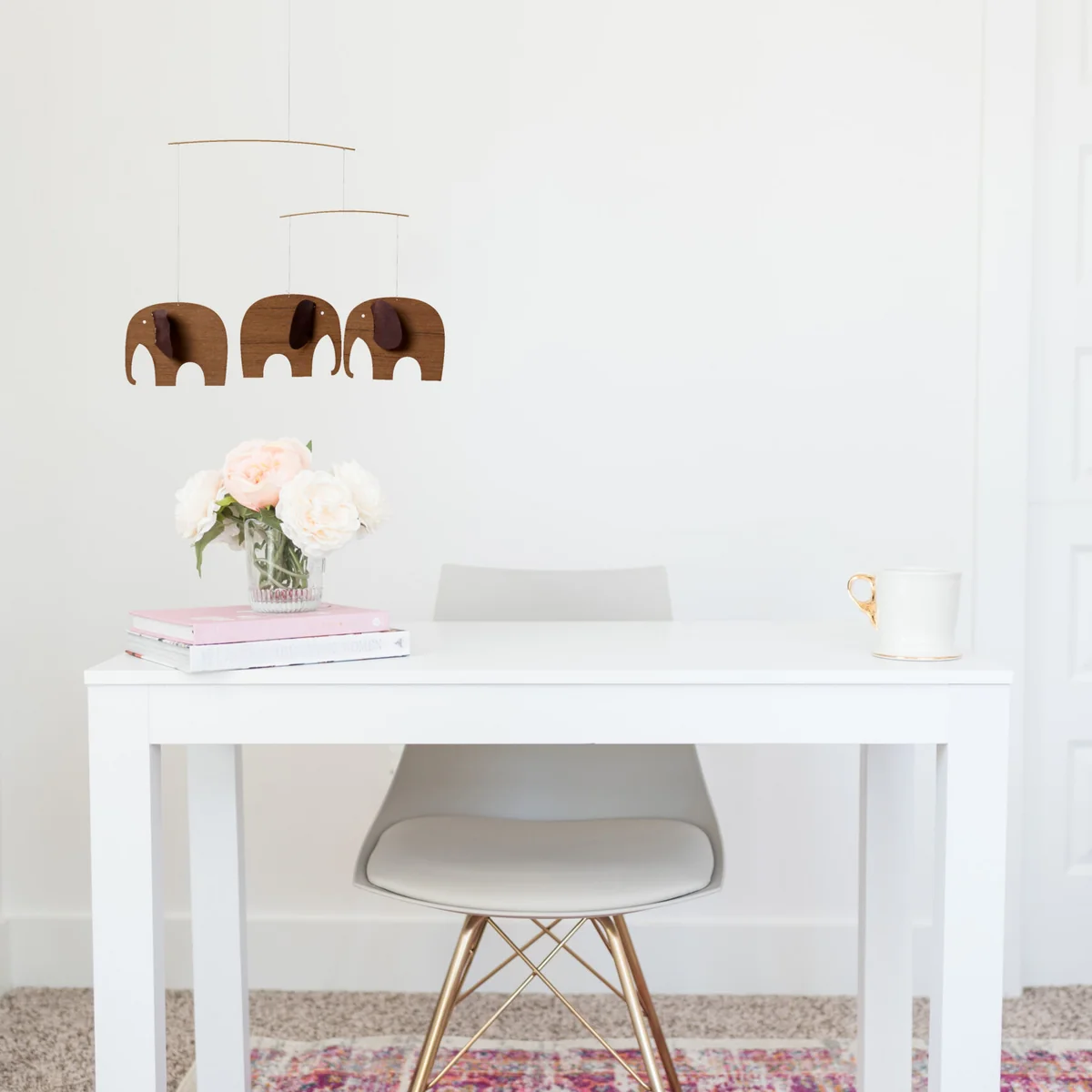 Mobiles sind als Dekoration sowohl im Fenster, frei im Raum oder über der Baby-Wiege ein farbenfroher und für das Kind ein ebenso faszinierender wie beruhigender Einrichtungsgegenstand. Seit 1975 ist Elefanten Treffen eines der meistverkauften Mobiles von Flensted.