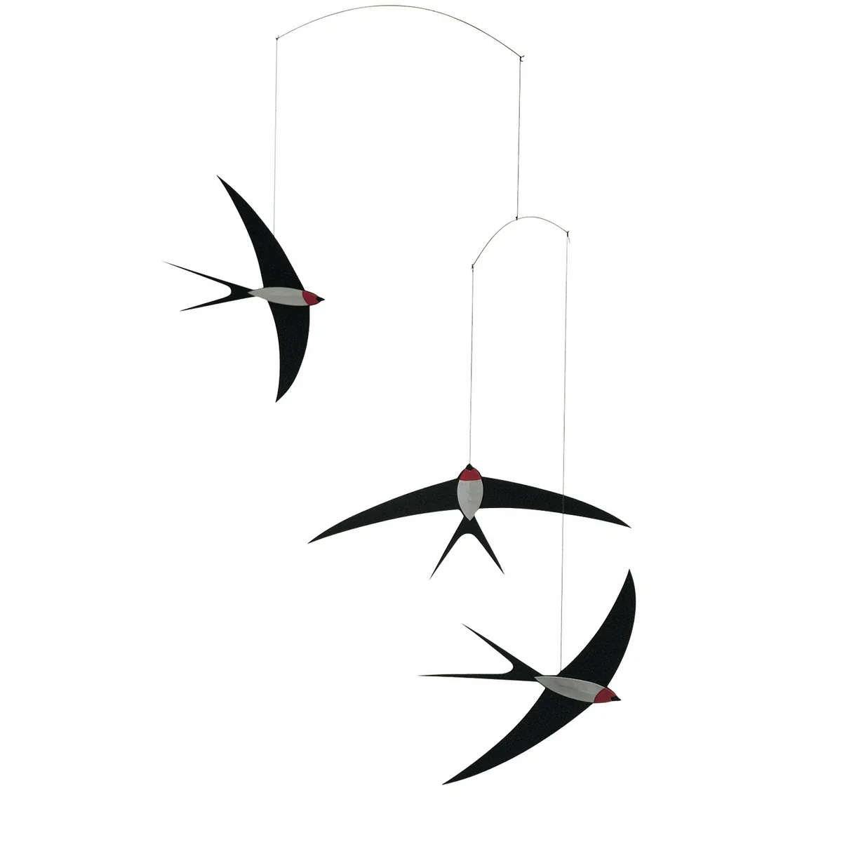 Den eleganten und akrobatischen Flug von Schwalben gibt es nun als Mobile: Flensted Mobiles bringt die kleinen Vögel mit dem Swallow Mobile ins Kinderzimmer.