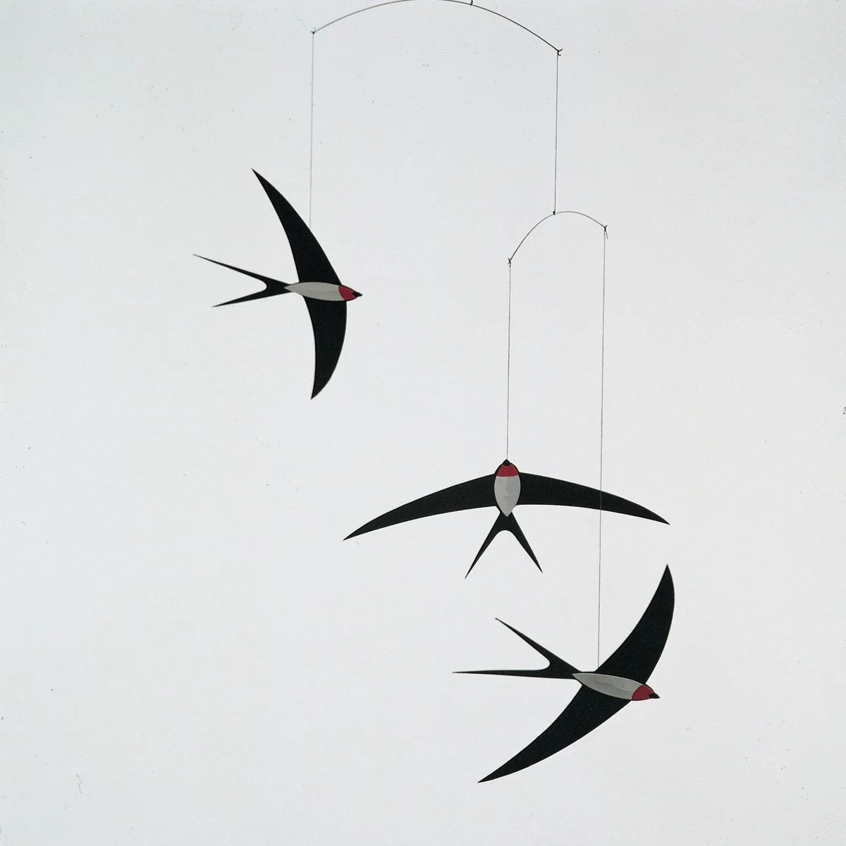 Die kleinen Schwalben des Flensted Mobiles Swallow Mobile beginnen schon bei leichten Luftbewegungen zu tanzen. Das reduzierte Design sorgt dafür, dass sich das Schwalben-Mobile nicht nur im Kinderzimmer, sondern auch als Deko-Objekt im Wohnbereich wohl fühlt.