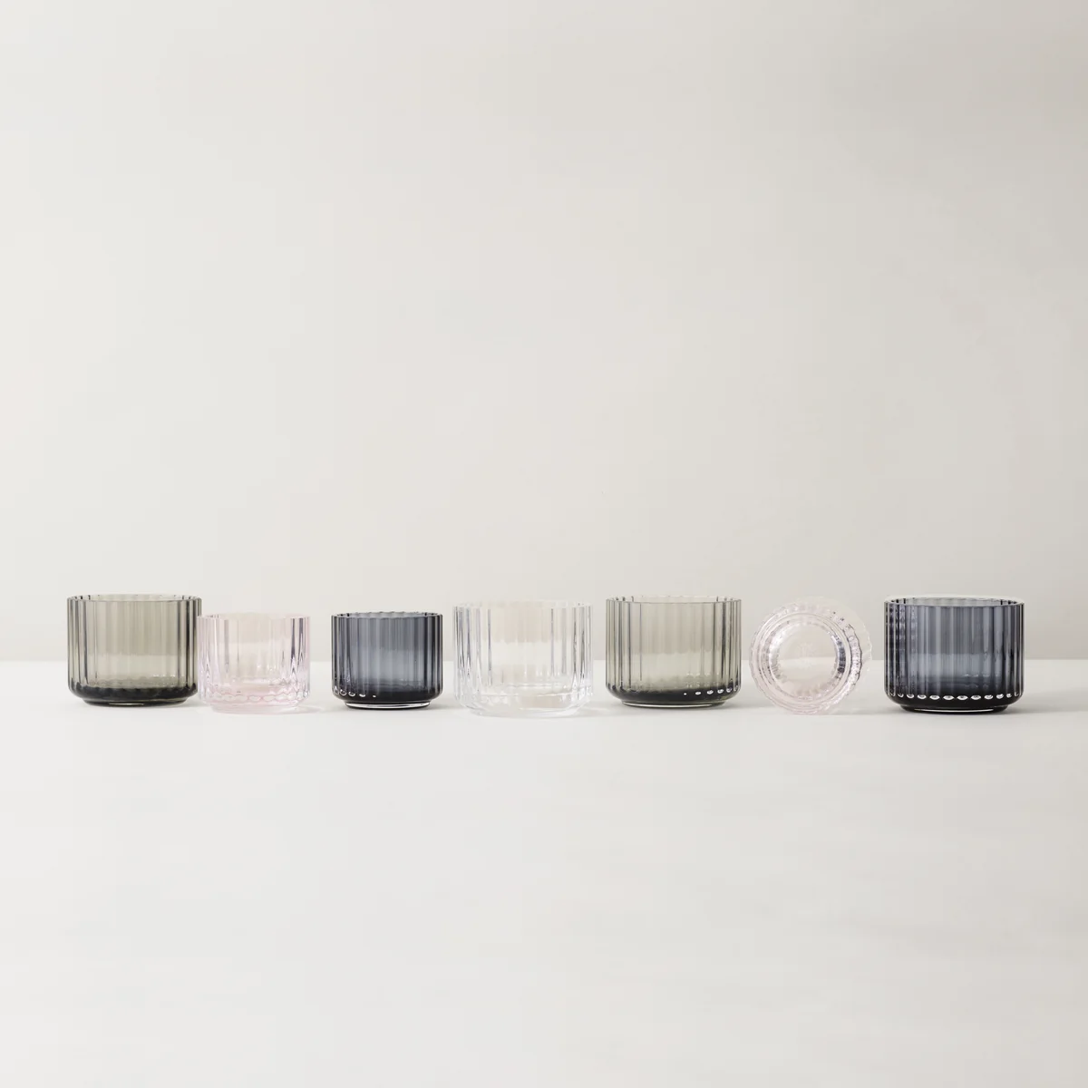 Die Lyngby Teelichthalter aus mundgeblasenem Glas werden von der dänischen Marke Lyngby Porcelæn gefertigt. Das Design lebt von seiner einzigartigen Ästhetik, das der geriffelten Struktur zu verdanken ist. Jedes Teelicht wird in aufwendiger Handarbeit aus Kristallglas hergestellt und ist ein Unikat. Das Lichtspiel der Teelichter erzeugt in den Glassäulen eine aussergewöhnliche Lebendigkeit.