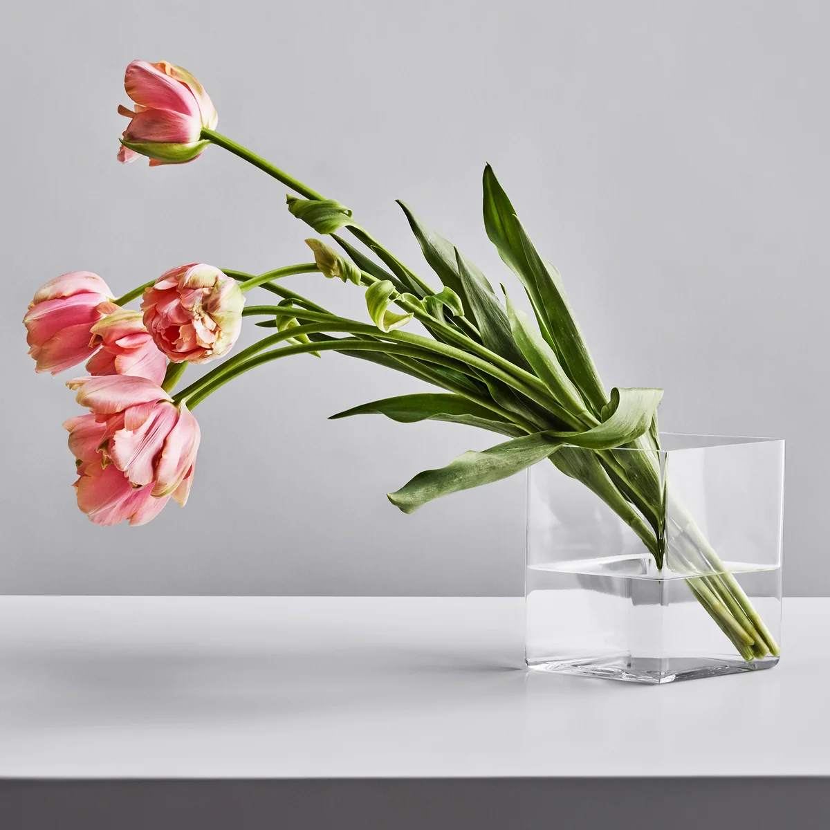 Das fliessend wirkende, mundgeblasene Glas und die leuchtende Qualität der flachen Oberfläche ergeben eine elegante Kombination mit der geometrischen Form. Die schlichten Konturen und die wunderschönen Farben legen natürlich nahe, die Vasen in Gruppen zu arrangieren.