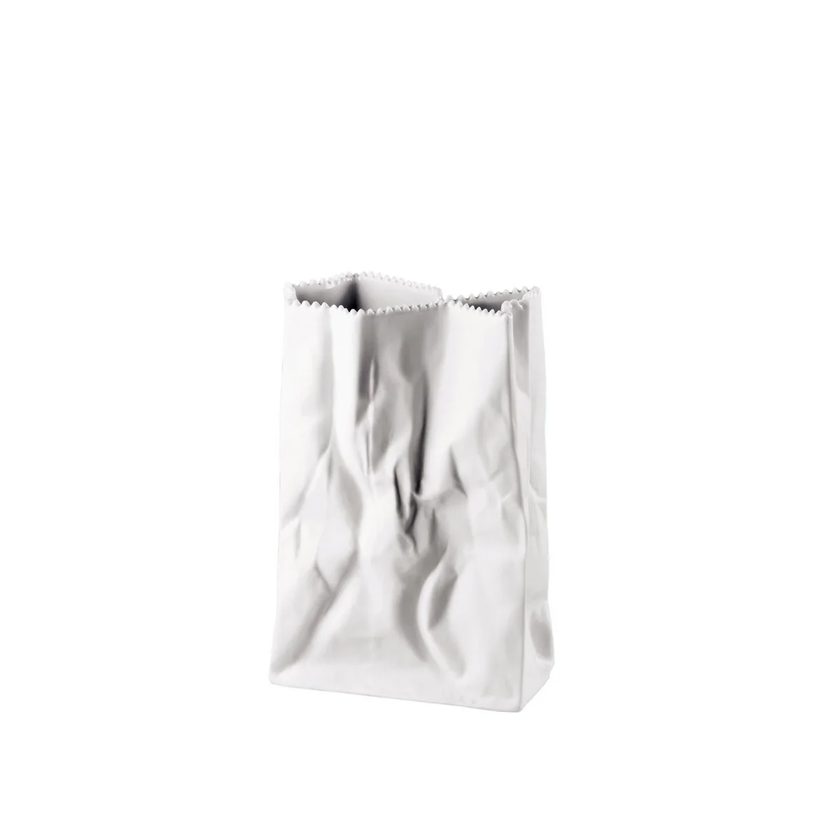 Die Vase wurde bereits 1977 entworfen und ist inspiriert von der einfachen Form einer Papiertüte. Die charakteristischen Knicke, Falten und der Zickzack-Rand einer solchen Tüte werden in der Tütenvase perfekt imitiert. In Porzellan verewigt wird die Papiertüte in Vasenform zum Designobjekt erhoben. Der Reiz liegt in dem Kontrast zwischen einer vermeidlich einfachen Tütenform und der hochwertigen Materialverarbeitung aus Porzellan.