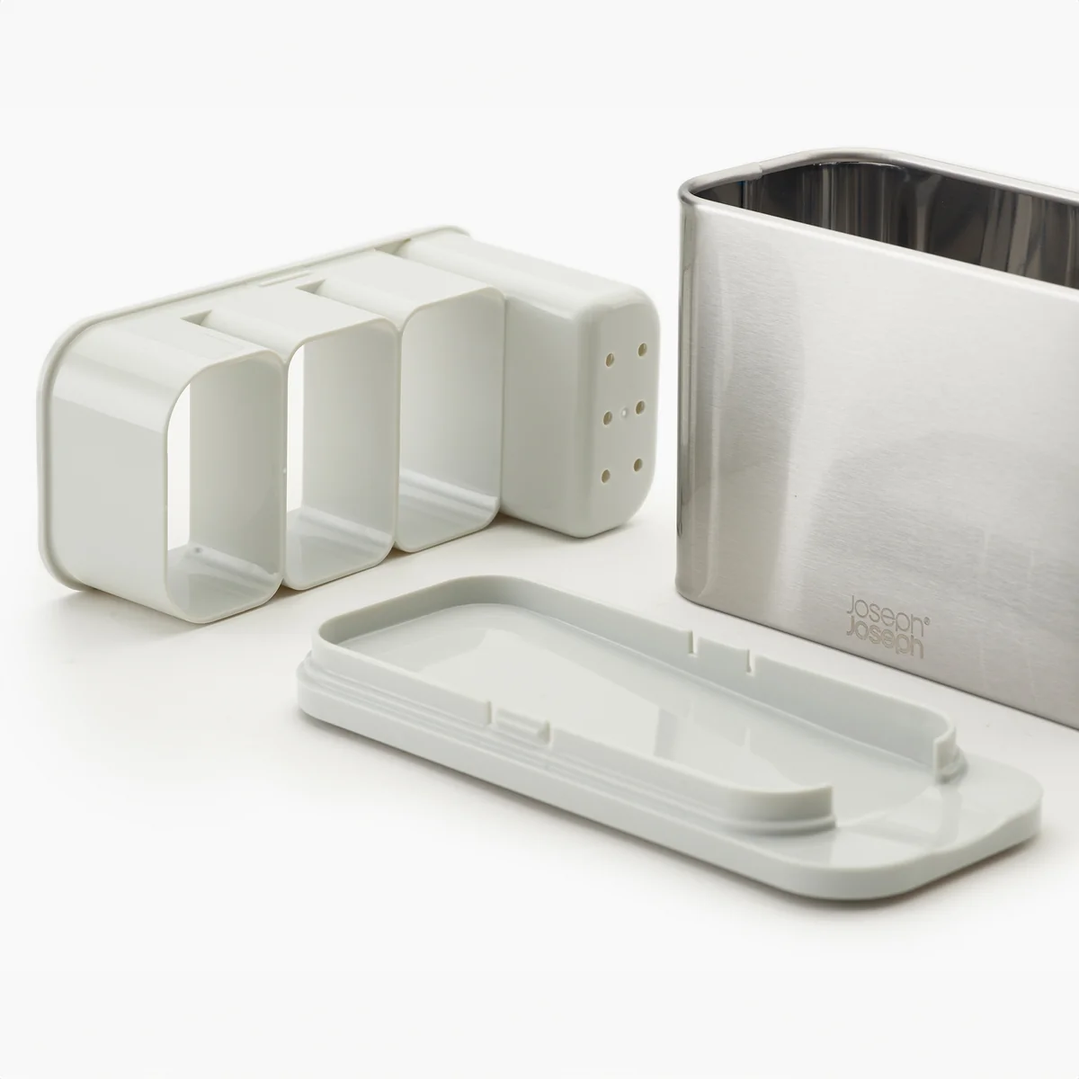 Die Abtropfschale für Besteck von Joseph Joseph kann vollständig auseinandergebaut werden, um sie per Hand zu reinigen und abzutrocknen.