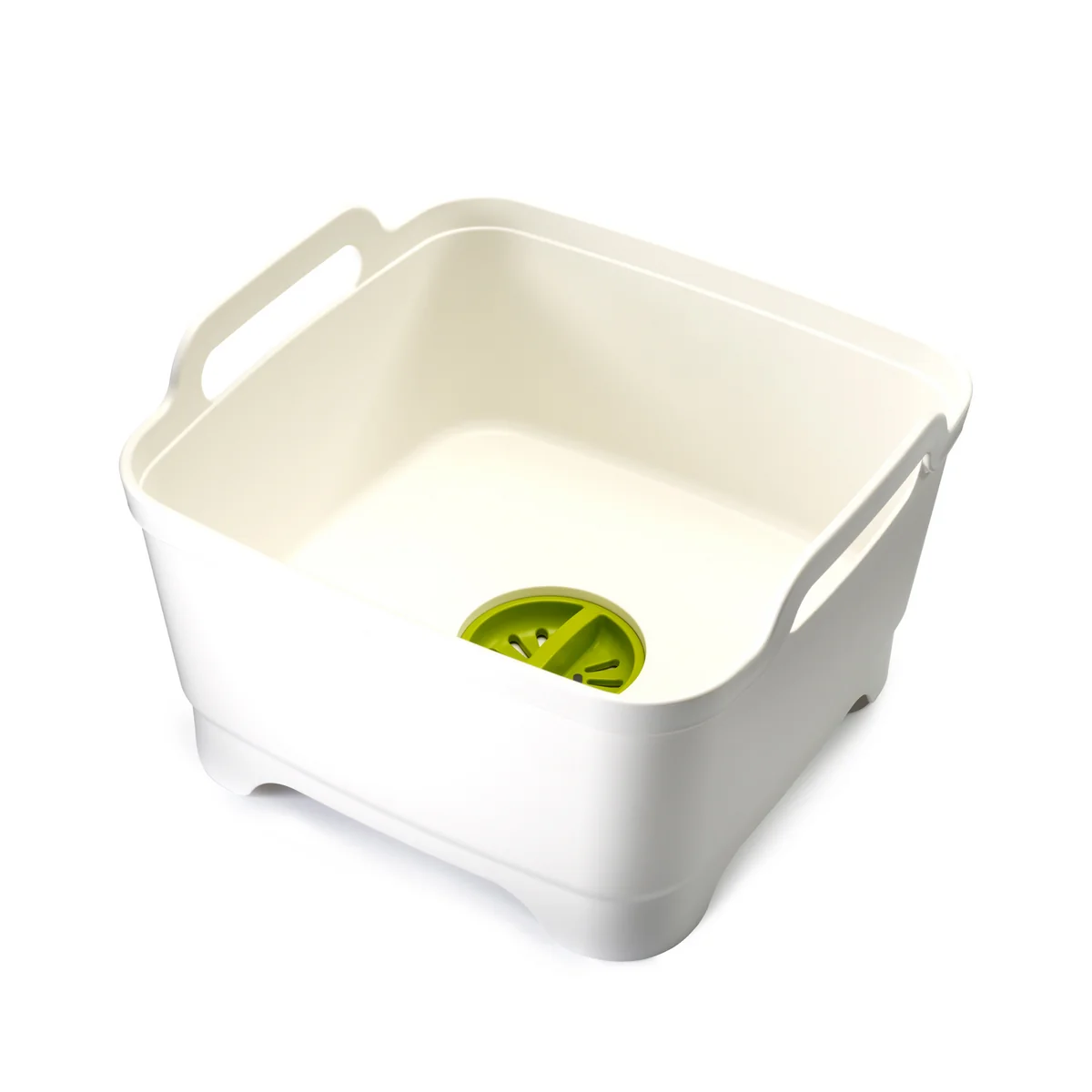 Die hohen Wände des Wash & Drain Geschirrspülbeckens sorgen dafür, dass das Wasser sicher im Inneren gehalten wird, während die grossen Tragegriffen einen einfachen Transport ermöglichen. Diese Vorzüge sorgen dafür, dass das Spülbecken von Joseph Joseph für den Einsatz an wirklich jedem Ort geeignet ist. Das Wash&Drain Store Geschirrspülbecken mit Ablaufstecker verfügt je nach Variante ausserdem über ein Aufbewahrungsfach mit Platz für Bürsten, Schwämme und Seifenspender.