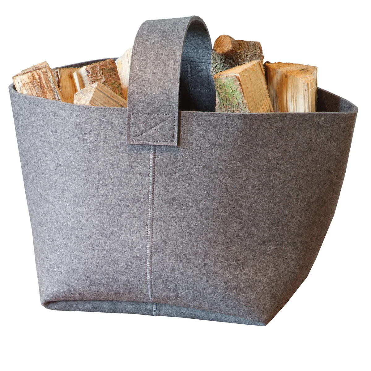 Der Kaminholzkorb von Hey Sign ist ein innovativer Korb aus Filz. Mancher würde den Korb wohl eher als Tasche bezeichnen, denn er besitzt keine massiven Aussenwände oder Stützen, sondern besteht einzig und allein aus Filz.