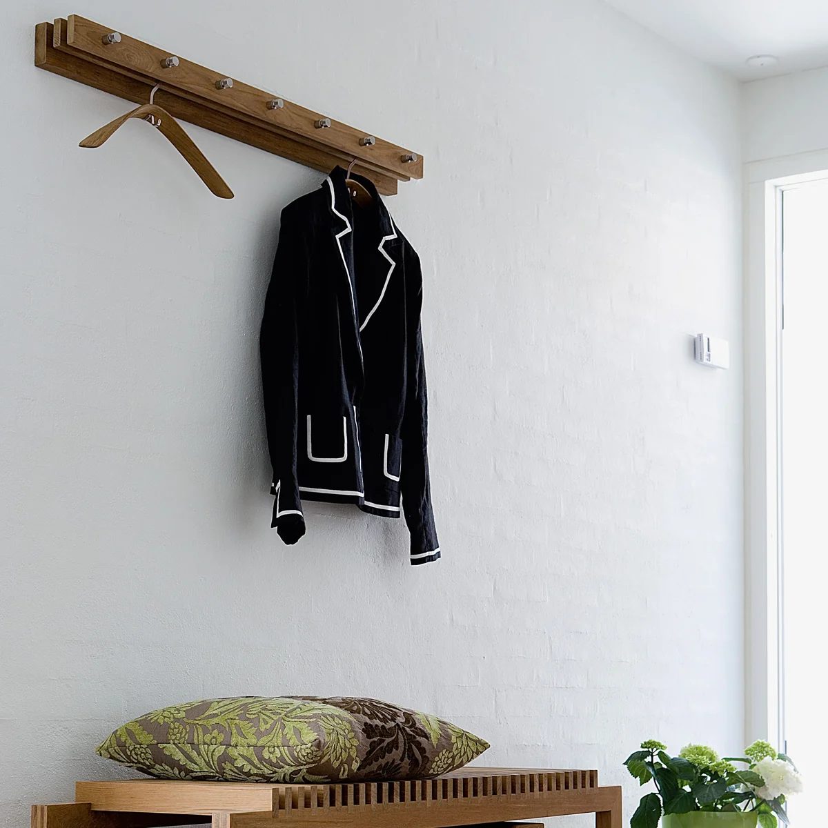 Den Pilot Kleiderbügel von Designerin Nina Tolstrup gibt es in den Ausführungen Teak und Eiche. Nicht zuletzt wegen des Materals ist der Pilot Kleiderbügel eine optimale Ergänzung zur Cutter Garderoben-Serie von Skagerak.