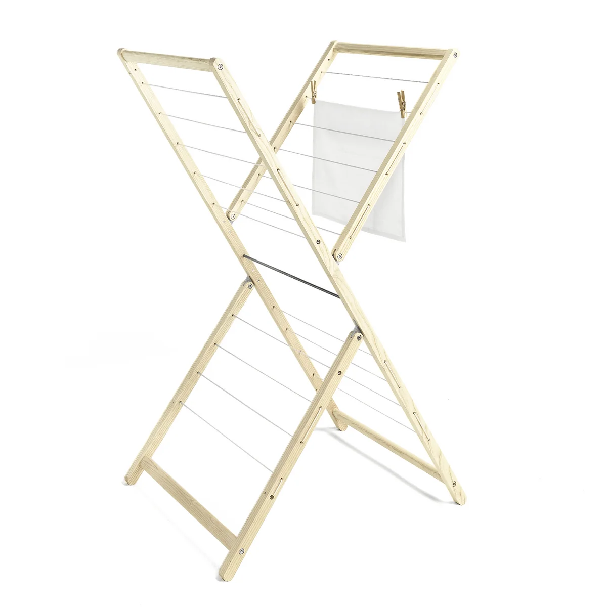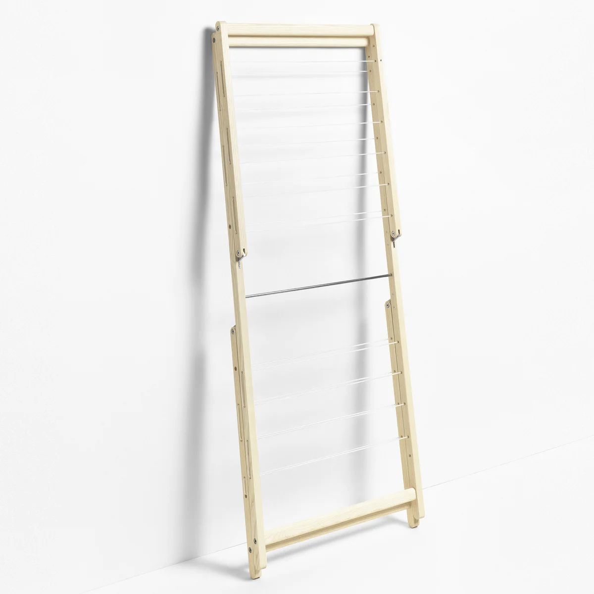 Statt in die Breite geht er in die Höhe und steht so überaus nützlich und platzsparend in kleinen Wohnungen. Der leichte und stabile Wäscheständer aus massivem Eschenholz lässt sich schnell, einfach und unkompliziert auf- und zusammenklappen.
