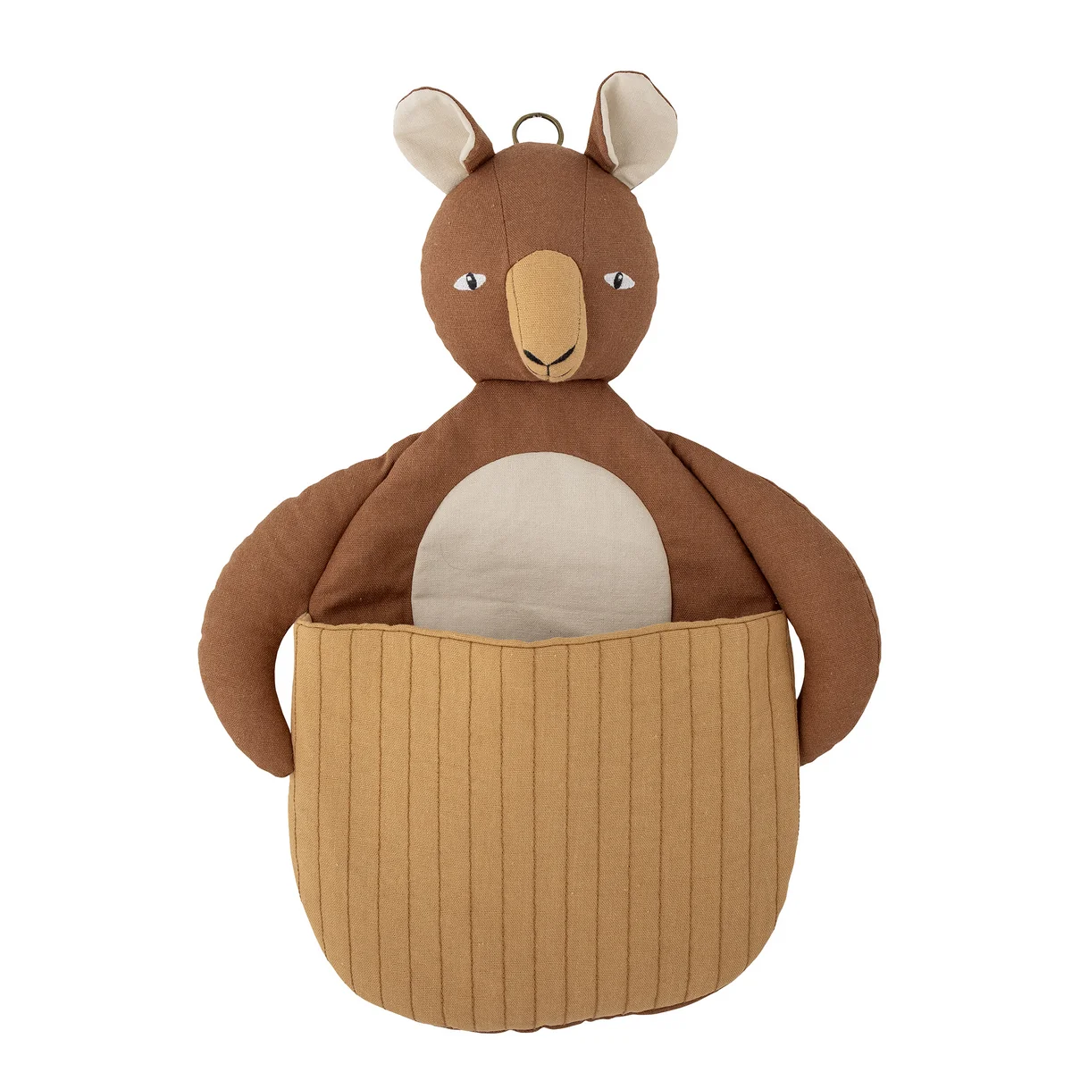 Die Mini Toto Wanddeko von Bloomingville ist eine niedliche Ergänzung zu jedem Kinderzimmer. Das Känguru verfügt über einen pummeligen Bauch und einen kleinen Kopf, der es besonders liebenswert wirken lässt. Die Wanddeko besteht aus Leinen und verfügt über eine Tasche am Bauch, in der die Kinder andere Kuscheltiere verstauen können. Die Wanddeko eignet sich wunderbar als Geschenk.