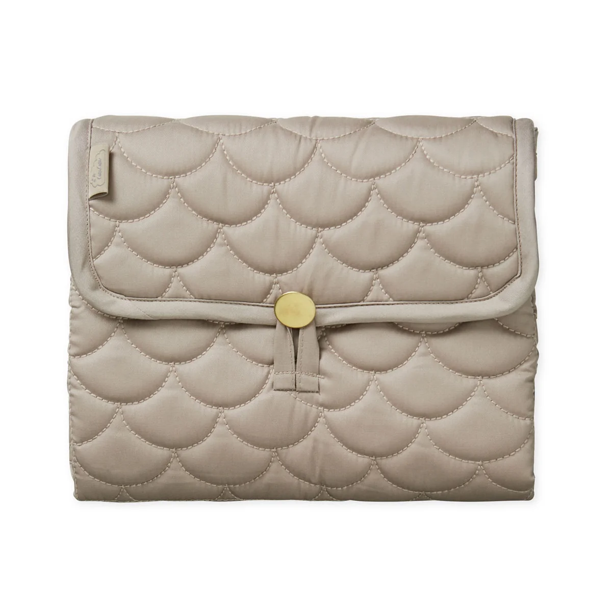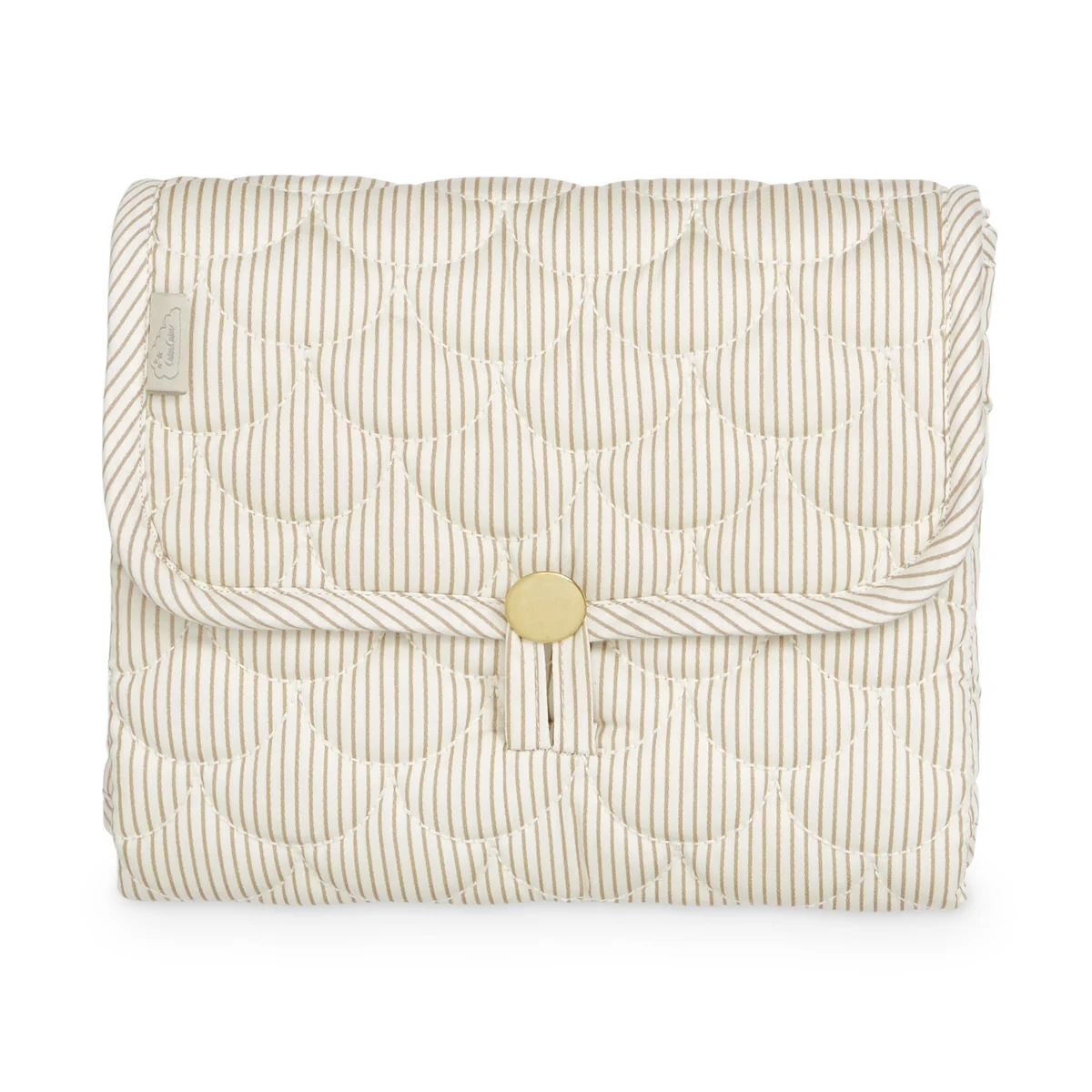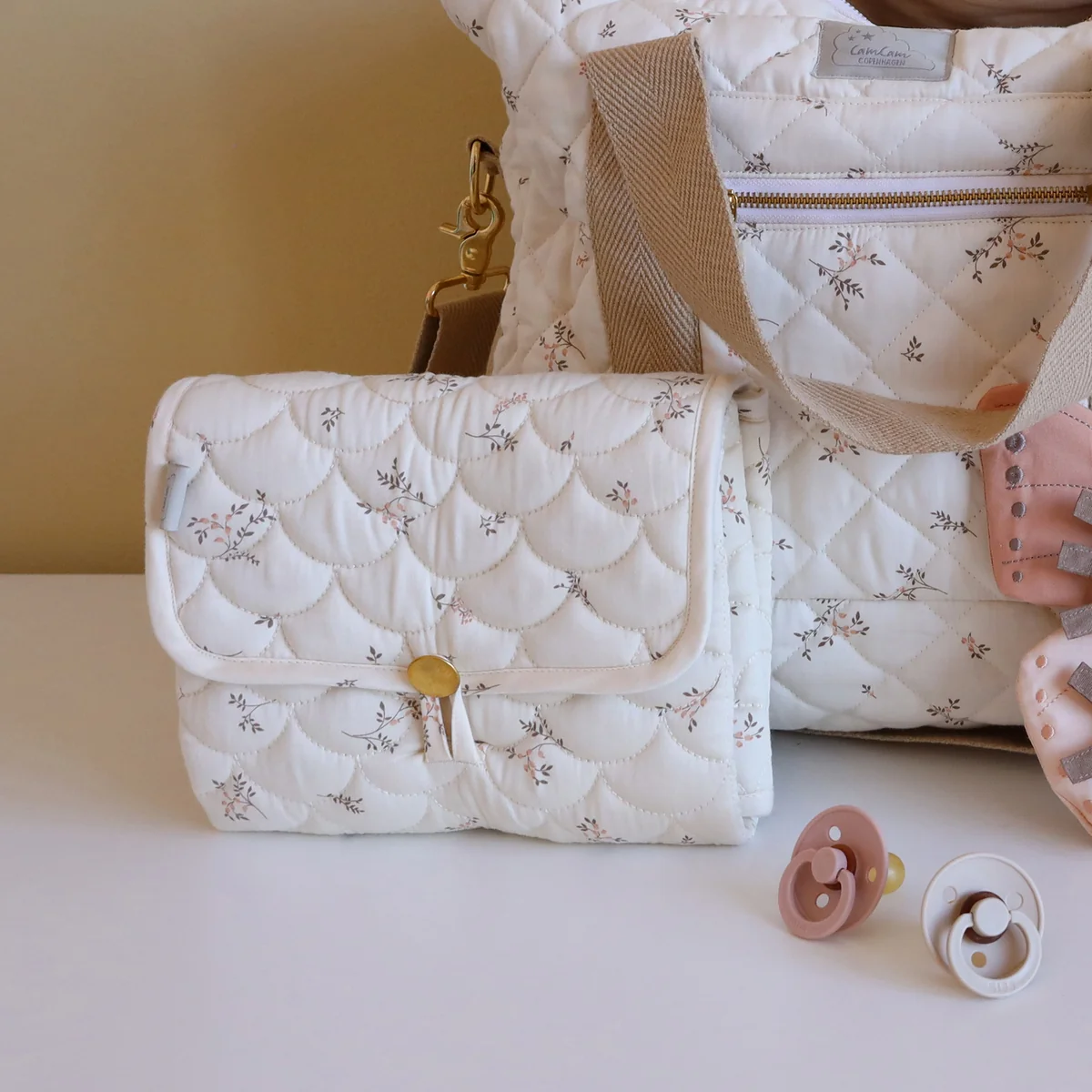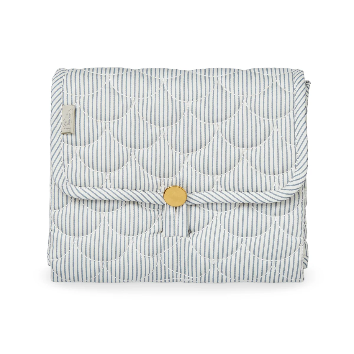 Die Gesteppte Wickelauflage von Cam Cam Copenhagen begeistert mit ihrer schönen, gesteppten Wellenoptik und ihrer hohen Funktionalität. Sie eignet sich ideal für allerlei Wickelsituationen unterwegs und lässt sich ganz simpel mit lediglich einer Hand falten, so passt sie optimal in jede Wickeltasche. Die kleine, integrierte Tasche bietet Platz für Windeln oder Mulltücher. Besonders praktisch: Die Oberfläche der Unterlage ist schmutz- und wasserabweisend. Dank ihrer Wattierung liegen Kleinkinder bequem und komfortabel. Das Aussenmaterial der Gesteppten Wickelauflage wird aus Bio-Baumwolle gefertigt, während das Futter aus Polyurethanschaumstoff besteht.