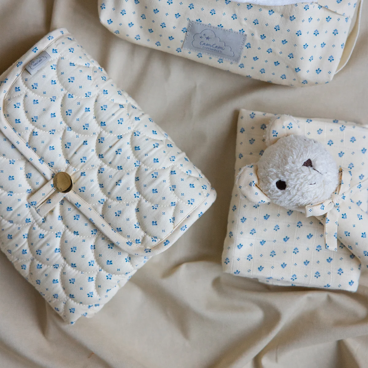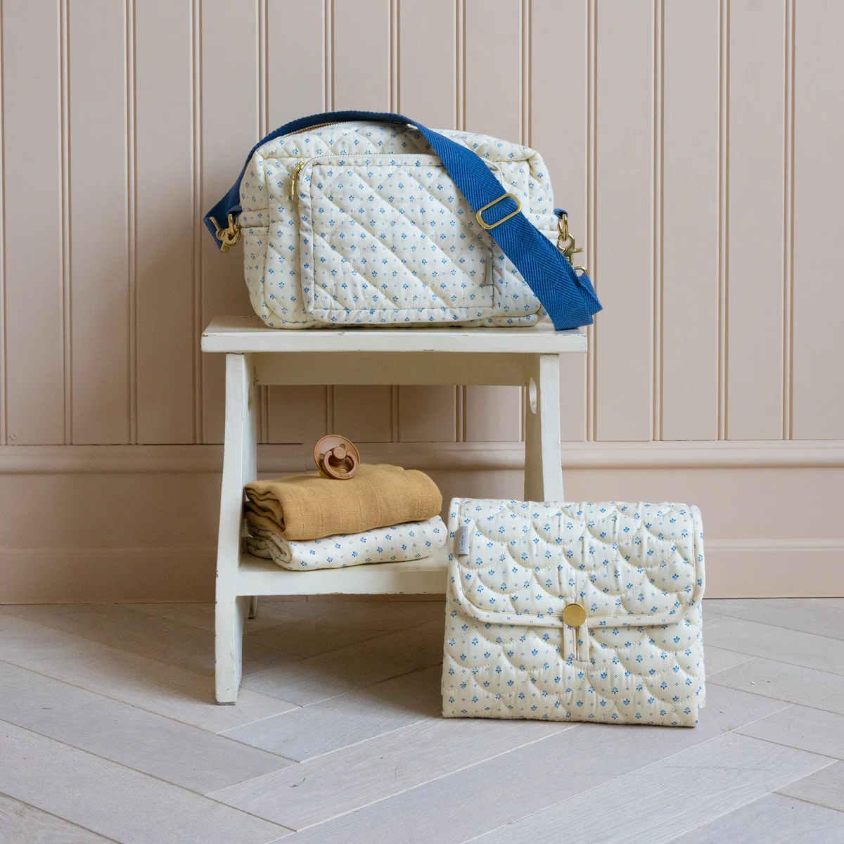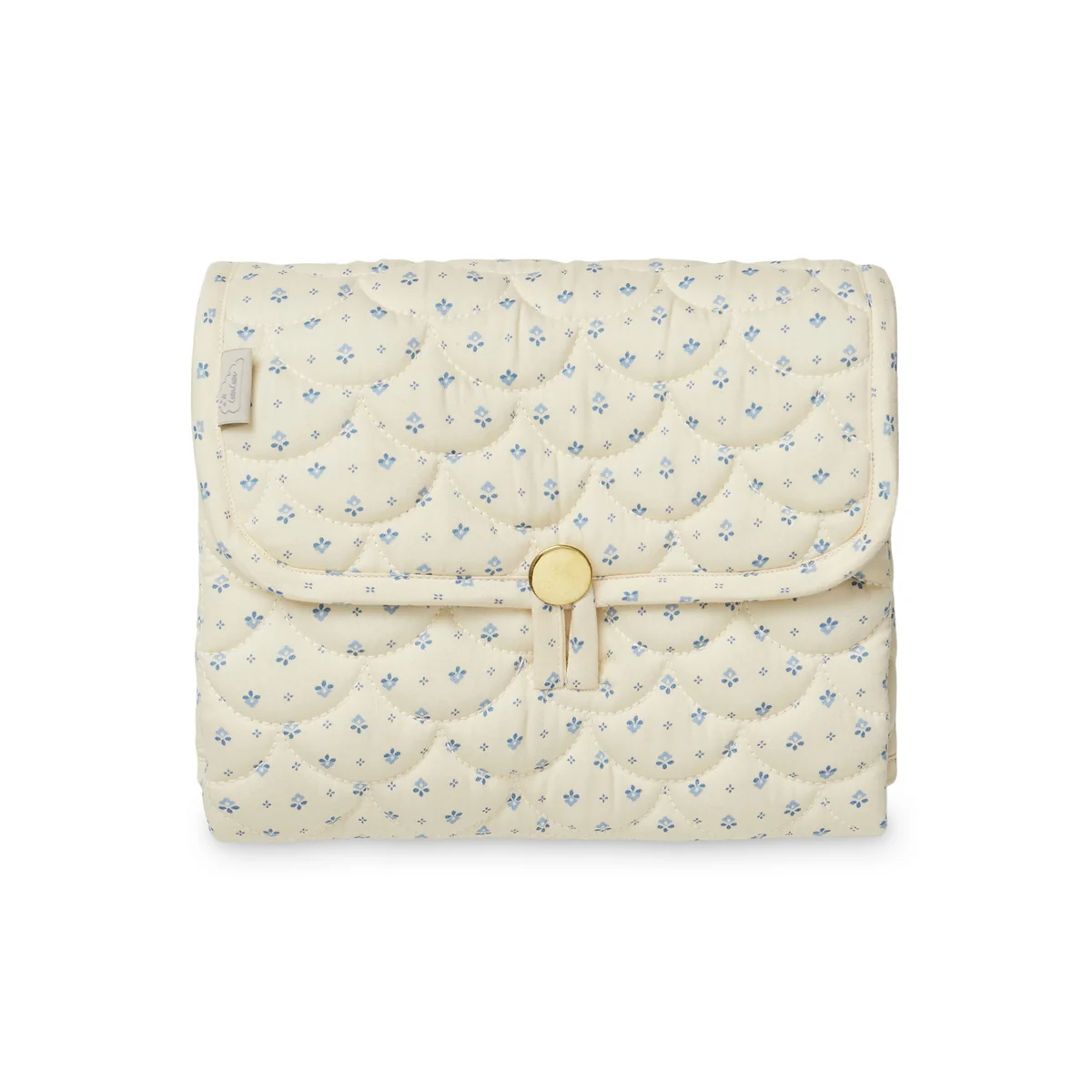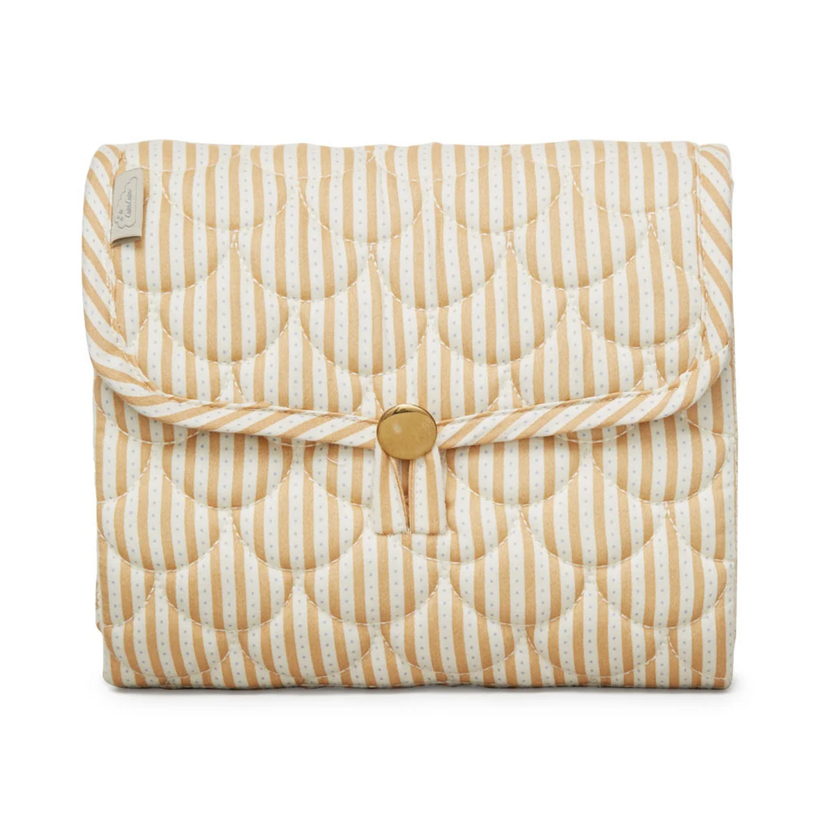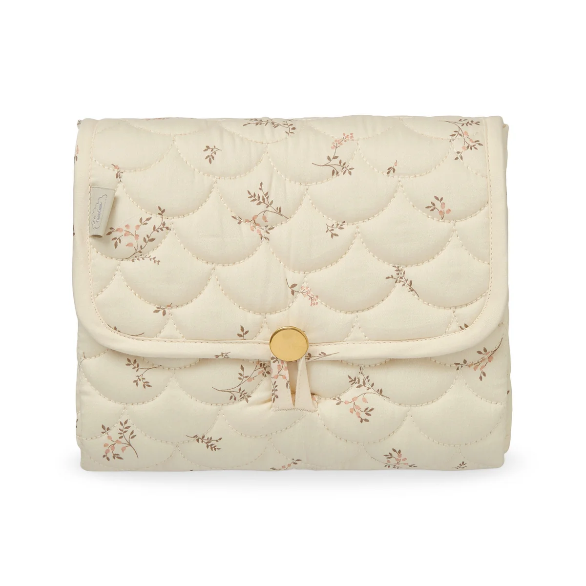 Die Gesteppte Wickelauflage von Cam Cam Copenhagen begeistert mit ihrer schönen, gesteppten Wellenoptik und ihrer hohen Funktionalität. Sie eignet sich ideal für allerlei Wickelsituationen unterwegs und lässt sich ganz simpel mit lediglich einer Hand falten, so passt sie optimal in jede Wickeltasche. Die kleine, integrierte Tasche bietet Platz für Windeln oder Mulltücher. Besonders praktisch: Die Oberfläche der Unterlage ist schmutz- und wasserabweisend. Dank ihrer Wattierung liegen Kleinkinder bequem und komfortabel. Das Aussenmaterial der Gesteppten Wickelauflage wird aus Bio-Baumwolle gefertigt, während das Futter aus Polyurethanschaumstoff besteht.