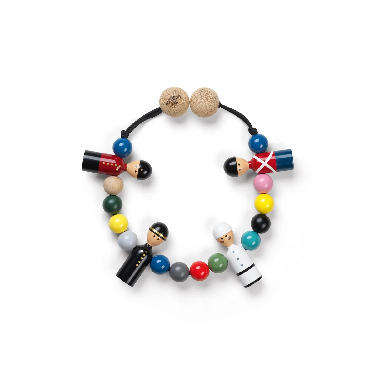 Mit der Kinderwagenkette von Kay Bojesen lässt sich der Kinderwagen noch liebevoller dekorieren. Die Holzkügelchen und die niedlichen Figuren sind in bunten Farben gehalten und sorgen für viel Spass bei den Kleinen! Dank der simplen Konstruktion ist die Kette leicht am Kinderwagen zu befestigen und für alle Arten von Kinderwagen geeignet.