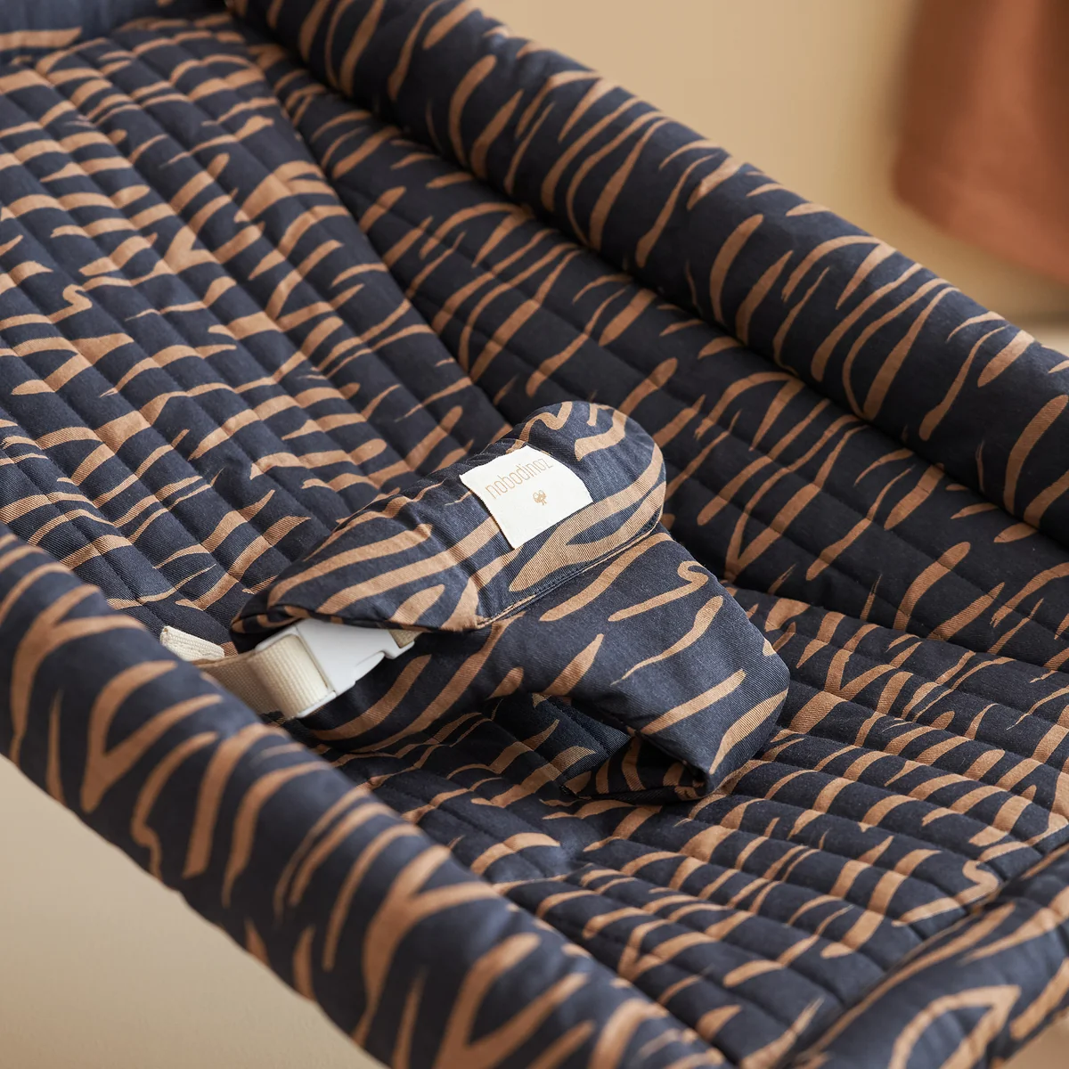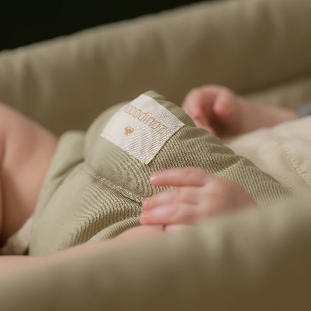 Hergestellt wird die Growing Green Babywippe von Nobodinoz aus massivem Buchenholz. Der Bezug aus organischer Baumwolle ist per Reissverschluss abnehmbar und lässt sich mit der Hand reinigen.