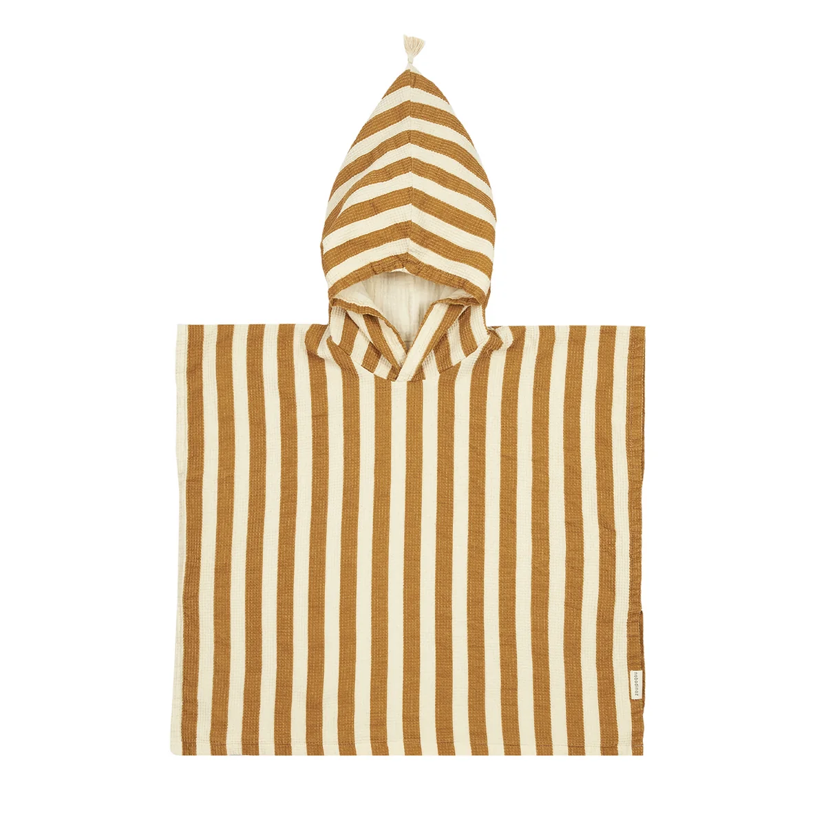 Mit seiner verspielten Bommelkapuze, den leuchtenden Streifen und der lockeren Passform bietet der Portofino Musselin Poncho von Nobodinoz Kindern den ganzen Sommer über idealen Sonnenschutz. Dank des Futters aus gewaschener Bio-Baumwolle ist er unübertroffen weich.