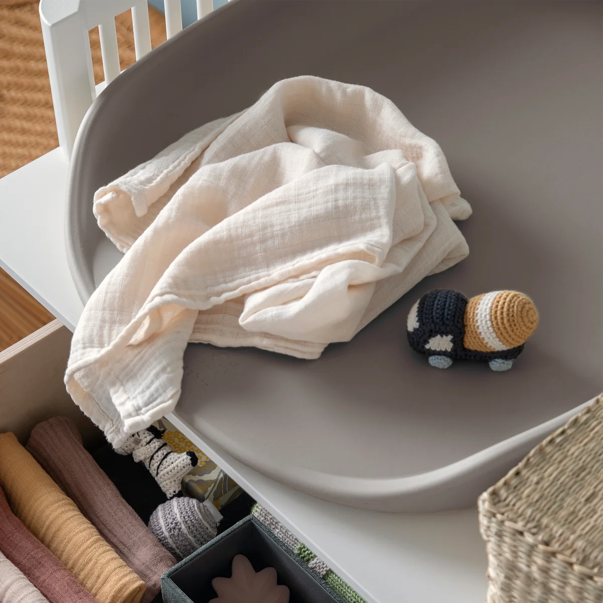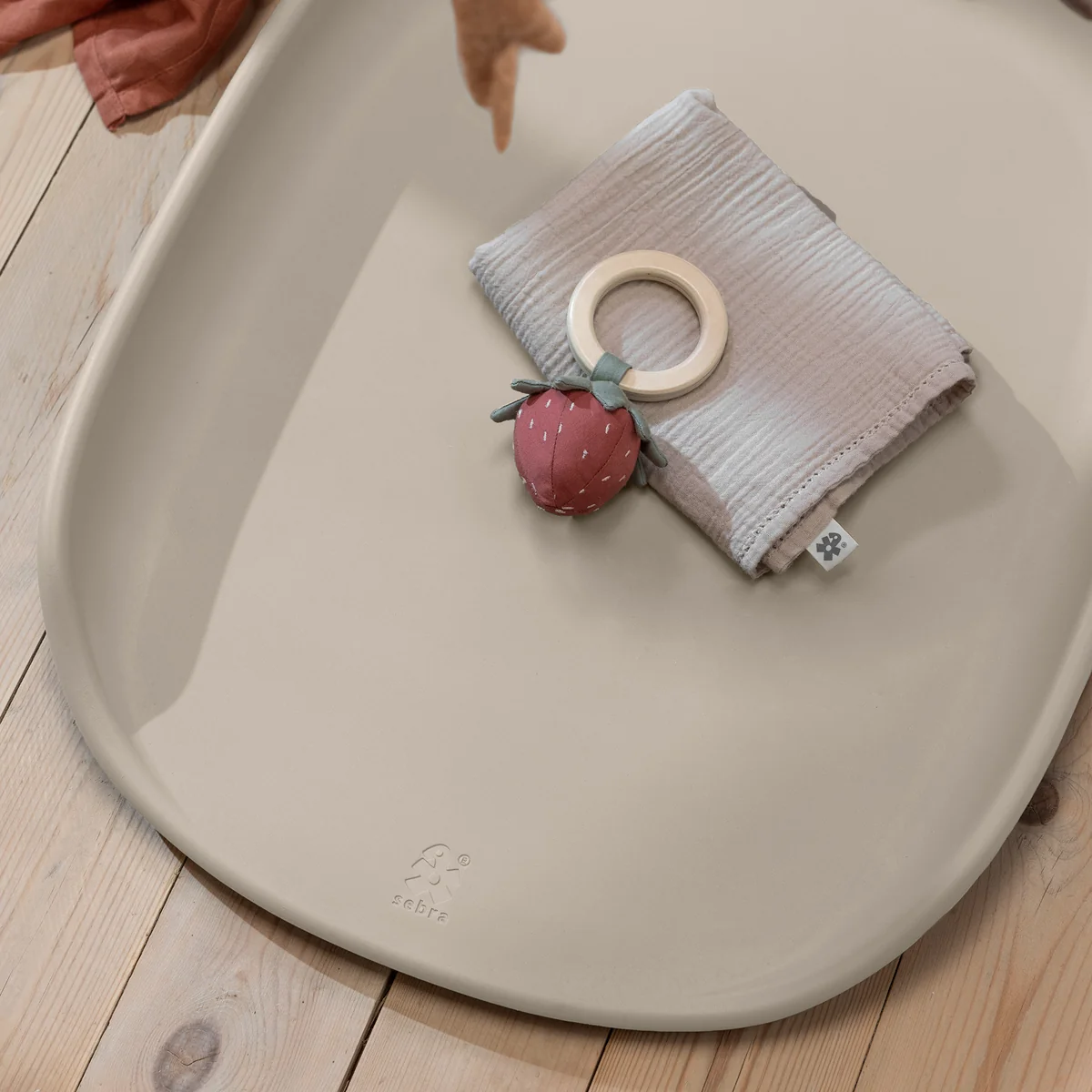 Pusle Pure von Sebra ist die perfekte Wickelmatte für aktive Babys und ihre Eltern. Sie wird aus weichem und wasserabweisenden PUR (Polyurethan) hergestellt, welches besonders leicht zu reinigen ist. Das Material ist ausserdem stossdämpfend, kann grosser Belastung standhalten und verfügt über eine hohe Verschleissfestigkeit.