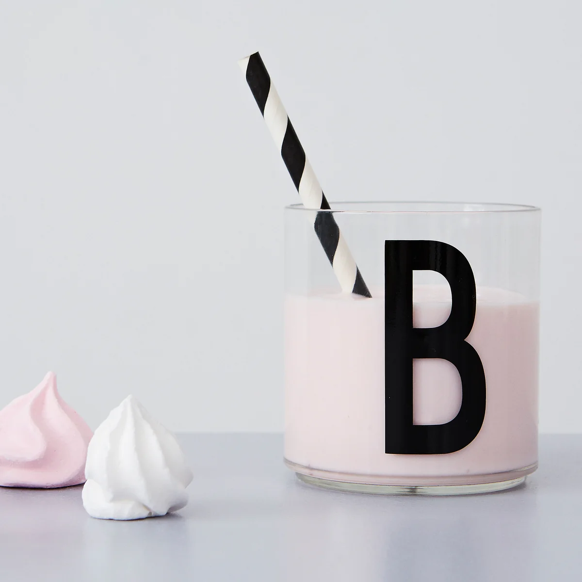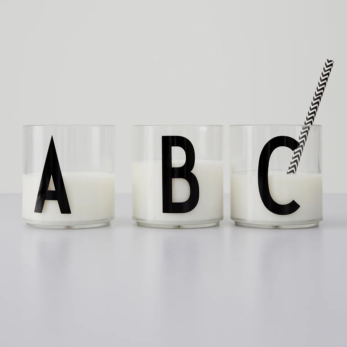 Das AJ Kids Personal Trinkglas A-Z von Design Letters ist ein multifunktionaler Becher aus Tritan, der mit jeweils einem Buchstaben in der typischen Arne Jacobsen Typografie bedruckt ist. Das macht ihn zum perfekten Geschenk für Kinder jeden Alters, aber auch für Erwachsenen. Diese können den Becher als Aufbewahrung für Stifte auf dem Schreibtisch oder für Zahnbürsten und Wattestäbchen im Bad nutzen. Vor allem in Kombination miteinander machen sich die Gläser super - beispielsweise auf einem dekorativen Tablett.