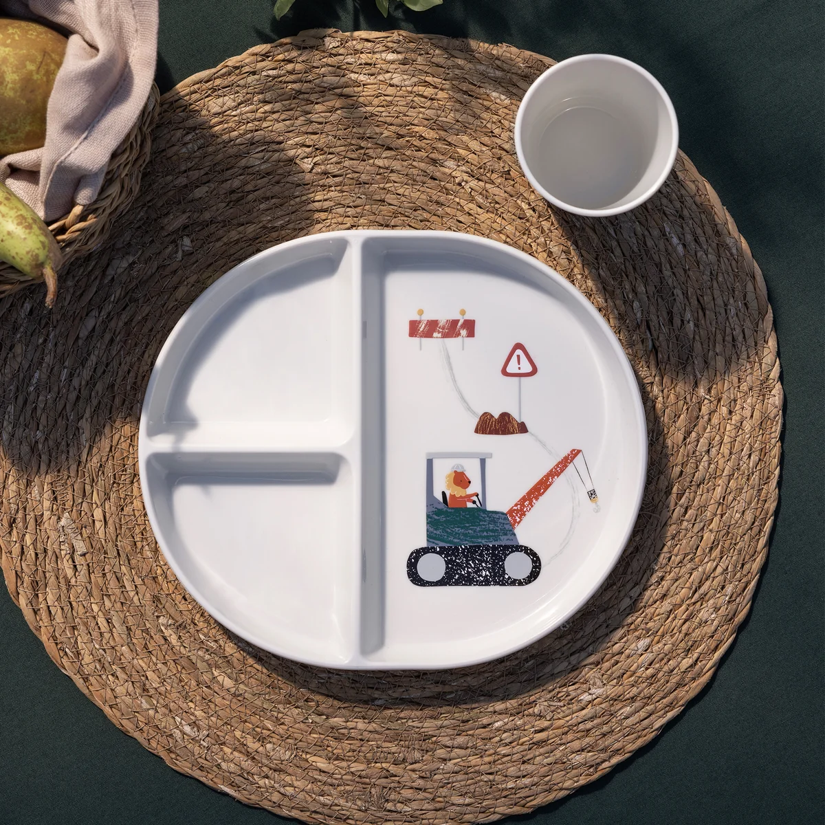 Teller aus Kunststoff mit niedlichem Motiv und abgetrennten Bereichen