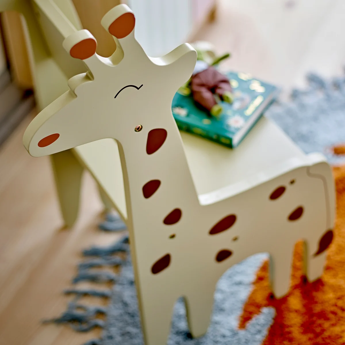 Der Ibber Stuhl von Bloomingville Mini ist ein charmanter Kinderstuhl in Form einer Giraffe, der jedes Kinderzimmer mit seinem verspielten Design bereichert. Hergestellt aus FSC-zertifiziertem MDF überzeugt der Stuhl durch nachhaltige Materialien, robuste Verarbeitung und lange Haltbarkeit. Das niedliche Giraffendesign in harmonischen Grüntönen sorgt für eine lebendige und kindgerechte Atmosphäre, die zum Spielen und Entspannen einlädt. Gleichzeitig bietet der Ibber Stuhl einen bequemen Sitz, der Funktionalität und stilvolles Design optimal vereint.