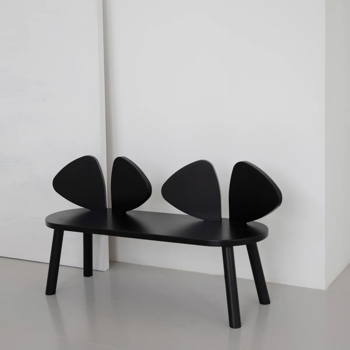 Die Mouse Kinderbank von Nofred zeichnet sich durch ihre runden Kanten und die elegante Form aus und bietet Platz für zwei Kinder von 2 bis 5 Jahren. Die Rückenlehne erinnert an Mäuseohren, woher die Mouse Serie ihren niedlichen Namen hat. Zu der Serie gehören neben der Bank auch Tische und Stühle in verschiedenen Höhen für Kinder in unterschiedlichen Altersklassen.