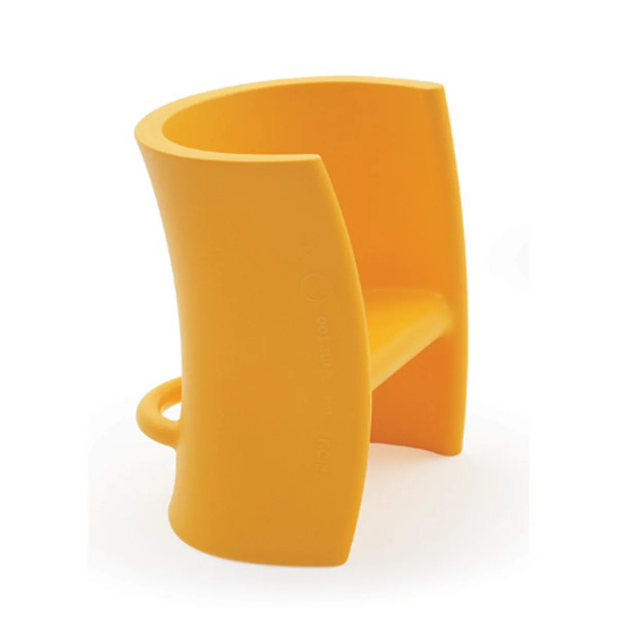 Auf den ersten Blick ist Trioli ein farbenfroher und dekorativer Kinderstuhl aus Kunststoff mit einer Sitzhöhe von 27 Zentimetern. Nach einer vertikalen Drehung um die eigene Achse hat er aber eine Sitzhöhe von 37 Zentimetern. Wird Trioli frontal auf den Boden gelegt, ist er aufgrund der abgerundeten Seiten eine hervorragende Wippschaukel mit einer Sitzhöhe von ca. 45 Zentimetern - das nennt man Multifunktionalität!.