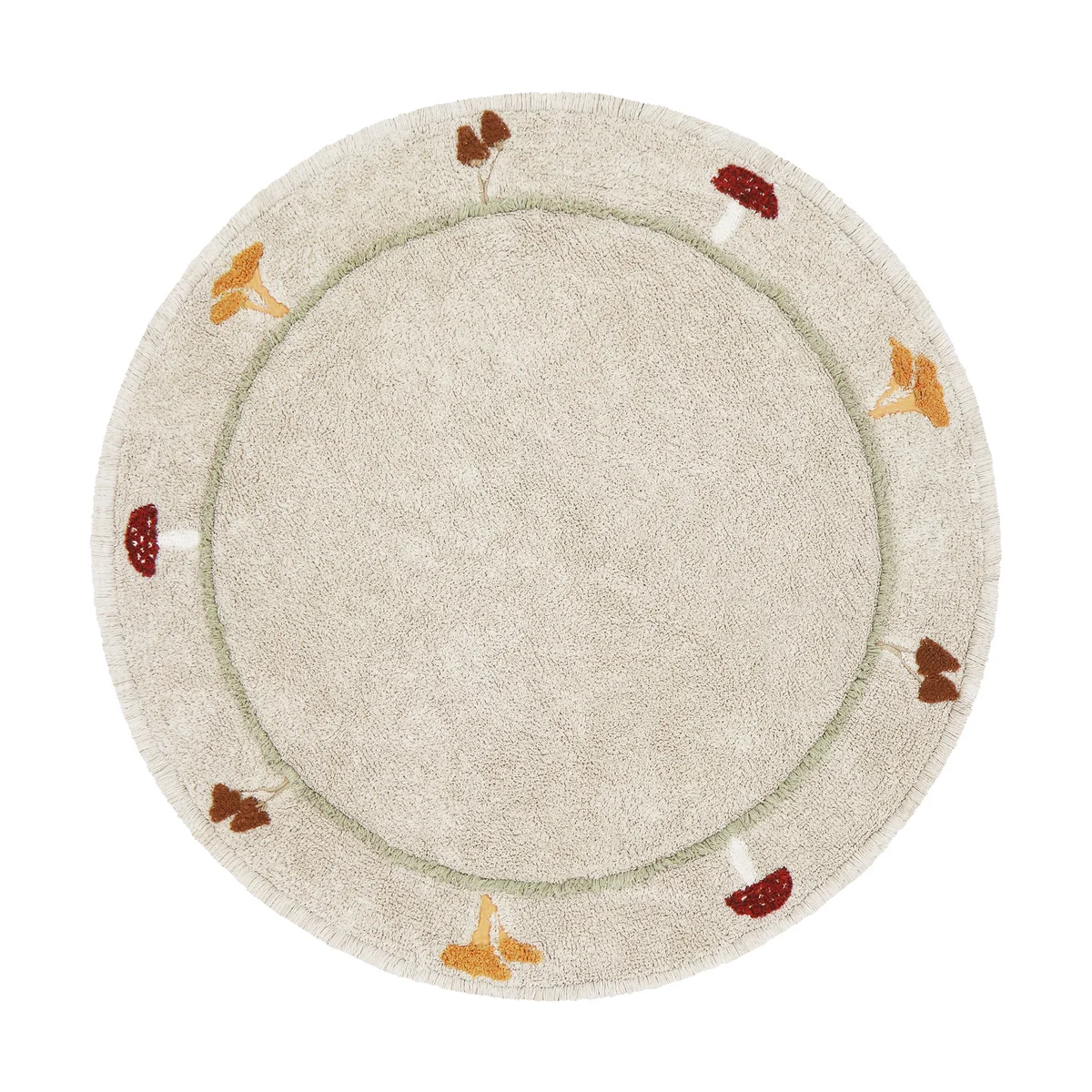 Der Chanterelle Teppich ist von Pilzen, insbesondere von Pfifferlingen, inspiriert. Das Design zeigt fröhliche und farbenfrohe Pfifferlinge auf einem neutralen Hintergrund. Dieses verspielte und naturbezogene Motiv spricht Kinder an und verleiht dem Raum einen Hauch von Natur und Abenteuer.