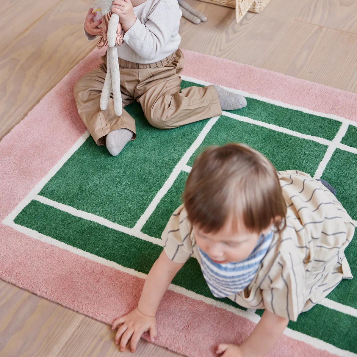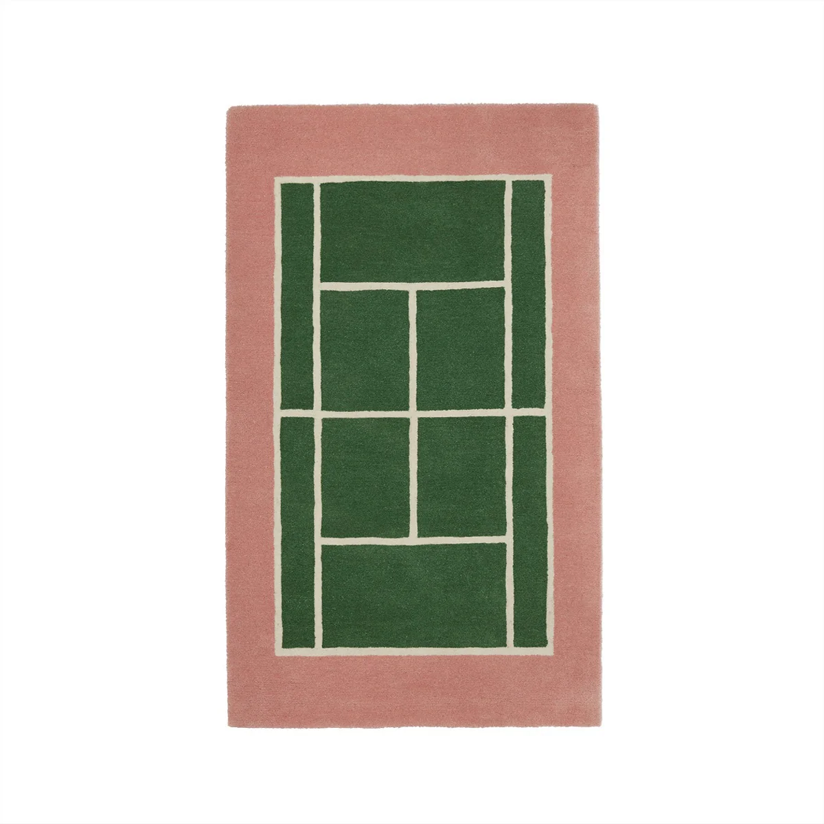 Das raffinierte Design des Tennis-Teppichs ist von klassischen Tennisplätzen inspiriert und kombiniert eine verspielte und zugleich elegante Ästhetik, die sich nahtlos in moderne Innenräume einfügt. Seine hochwertigen Materialien sorgen für Langlebigkeit und Komfort und machen ihn zu einer praktischen und stilvollen Ergänzung der Einrichtung.
