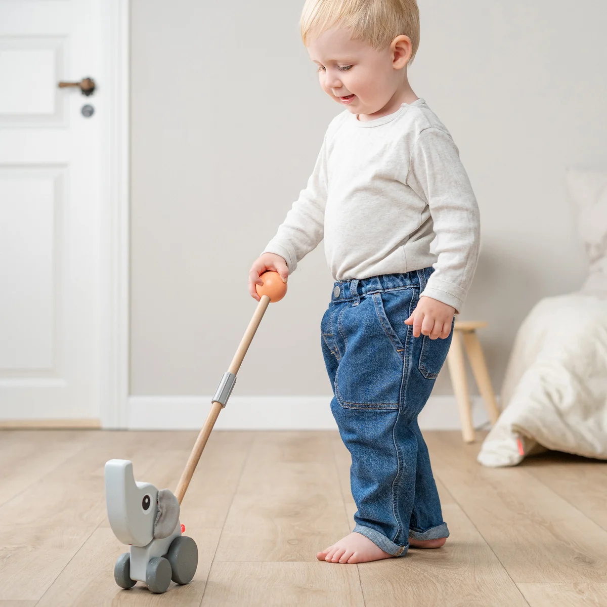 Mit einem ergonomischen Design, das perfekt auf kleine Hände abgestimmt ist, fördert dieses Schiebespielzeug die Entwicklung der Feinmotorik und Hand-Augen-Koordination Ihres Kindes. Der robuste und gut ausbalancierte Aufbau des Schiebespielzeugs gewährleistet, dass das Kind beim Laufenlernen die nötige Stabilität und Sicherheit hat. Es ermutigt zum Aufstehen und Laufen auf spielerische Weise.
