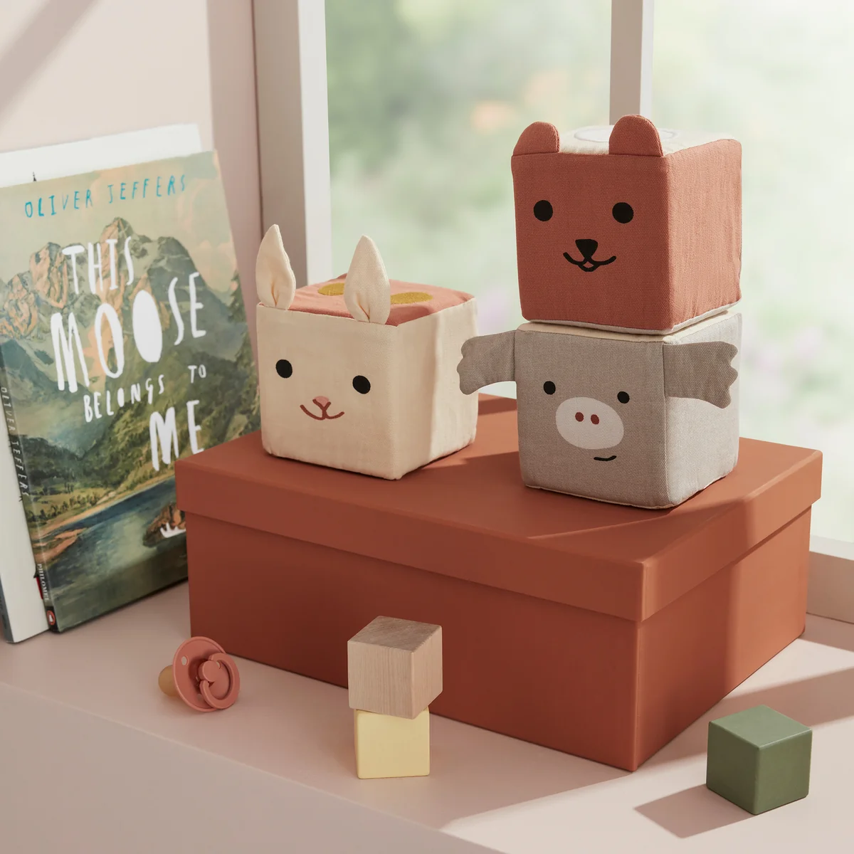 Das Design des Stoffwürfels ist nicht nur funktional, sondern auch ansprechend. Mit verschiedenen Mustern, Texturen und Formen auf den Seiten des Würfels regt er die Neugier der Kinder an und bietet eine Vielzahl von Möglichkeiten zum Entdecken und Lernen.