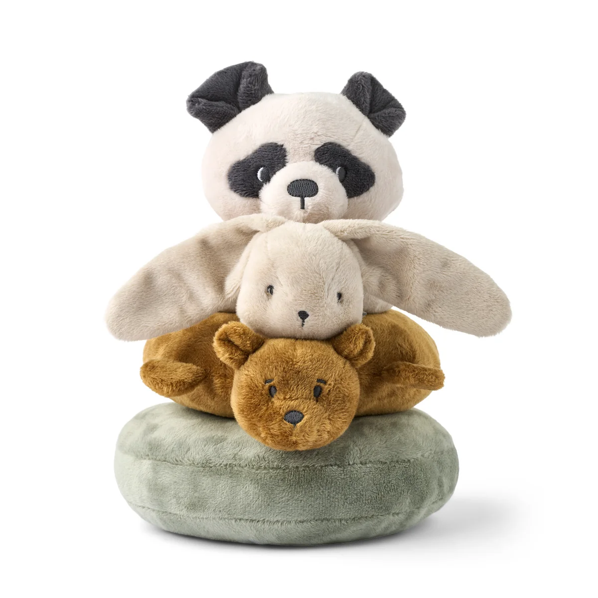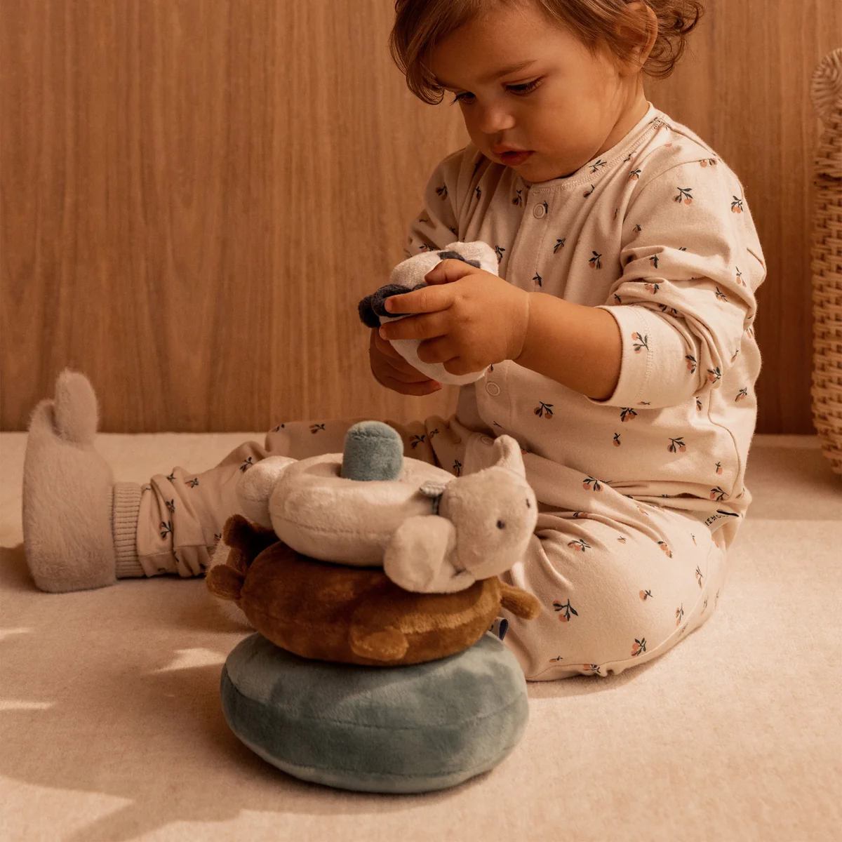 Der Sannie Stapelturm von LIEWOOD, erhältlich im Connox Wohndesign-Shop, ist ein liebevoll gestaltetes Lernspielzeug aus weichem Plüsch. Jeder Ring ist in Tierform gearbeitet und mit knisterndem Stoff sowie Glöckchen gefüllt, sodass er auch einzeln als Rassel genutzt werden kann. Das Stapeln trainiert spielerisch die Feinmotorik, regt die Sinne an und sorgt für jede Menge Spass. Gefertigt aus 100 % GRS-zertifiziertem recyceltem Polyester, verbindet der Stapelturm Nachhaltigkeit mit einem hohen Kuschelfaktor – ideal für kleine Entdecker.