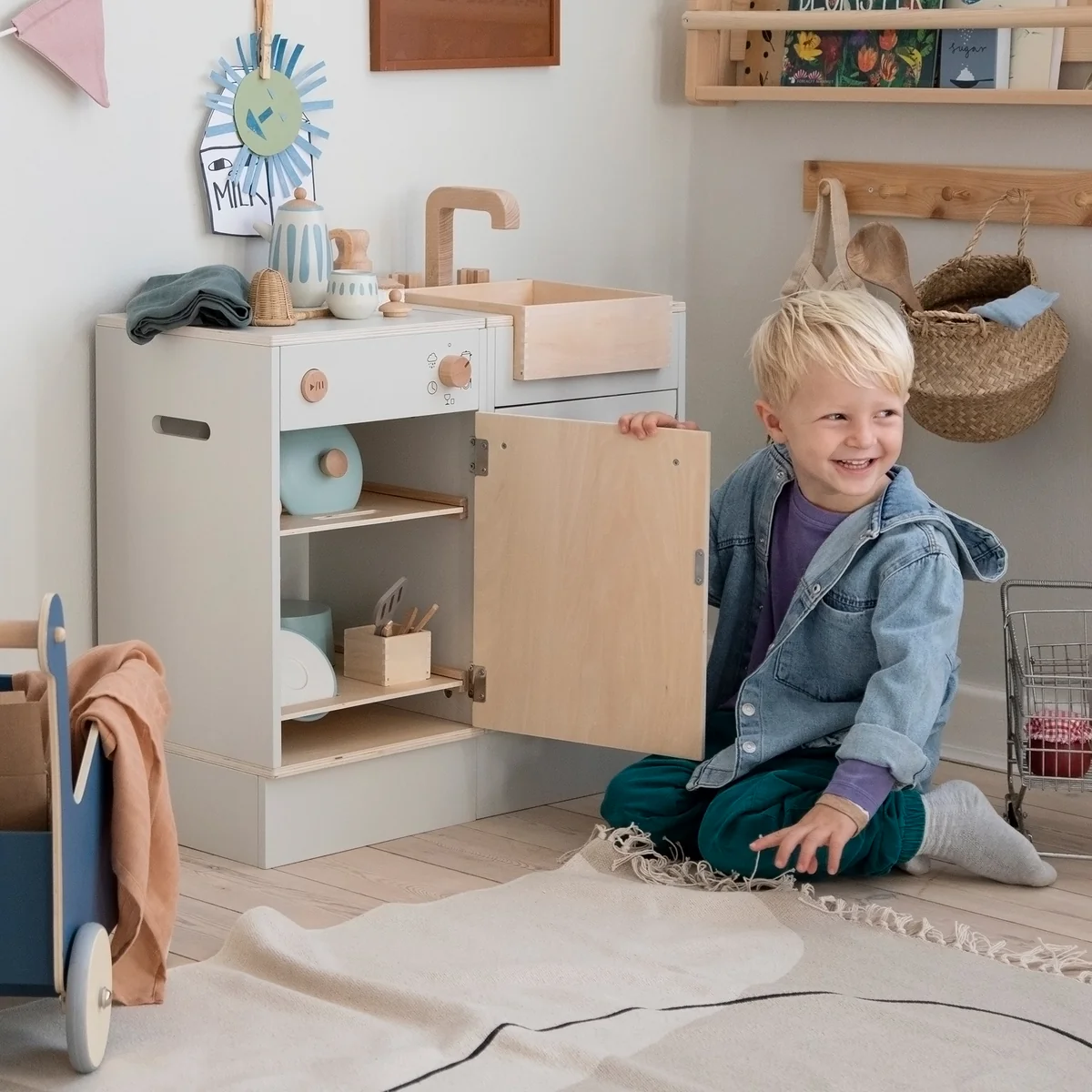 Die KIDchen Kinderküche aus Holz aus dem dänischen Hause Sebra sorgt mit organischem Design für vielfältigen Spielspass. In unterschiedlichen Varianten aus FSC-zertifiziertem Holz können die Kinder zu Profi-Köchen heranwachsen. Ob einzeln oder in Kombination; der Küchenherd, Geschirrspüler und das Spülbecken komplettieren die eigene Spielküche.
