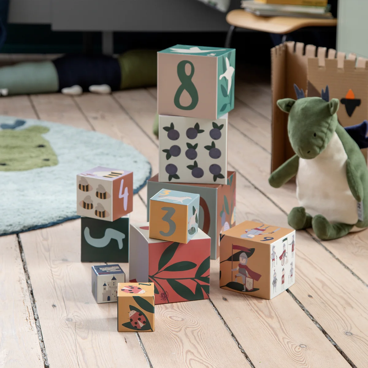 Die Stapelblöcke von Sebra sind schöne und dekorative Spielzeuge im 10er Set. Die Blöcke werden in einer Box geliefert und sind mit den Prints Dragon Tales und Pixie Land verziert. In verschiedenen Grössen macht es besonders viel Spass, mit den Klötzen Türme zu bauen und sie auch wieder umzuwerfen.