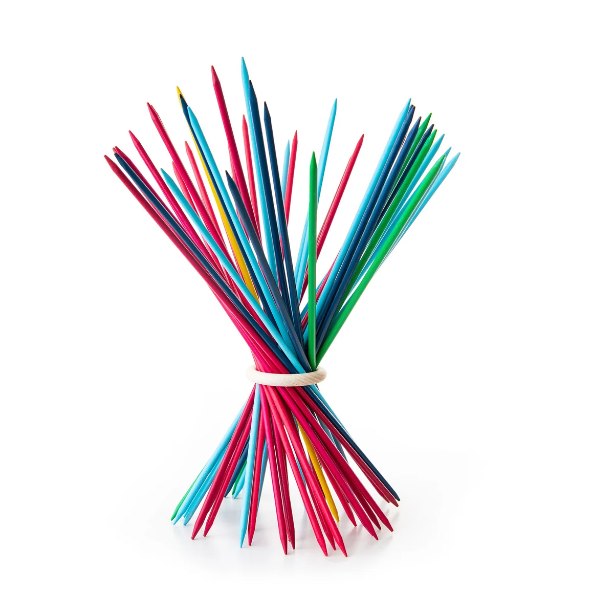 Stickado von Remember ist Spiel und Designobjekt in einem. Die 50 Holzstäbe aus Pinienholz sind in fünf verschiedenen Farben lackiert und lassen sich mit einem Holzring einfach zusammenhalten. So können die Stäbe dekorativ als eine Art bunter Strauss auf dem Schreibtisch oder Sideboard aufgestellt werden. Darüber hinaus kann Stickado auch für das klassische Geschicklichkeitsspiel Mikado genutzt werden, bei dem versucht wird, einen Stab nach dem anderen aufzunehmen, ohne dass der umgefallene Haufen anfängt zu wackeln.