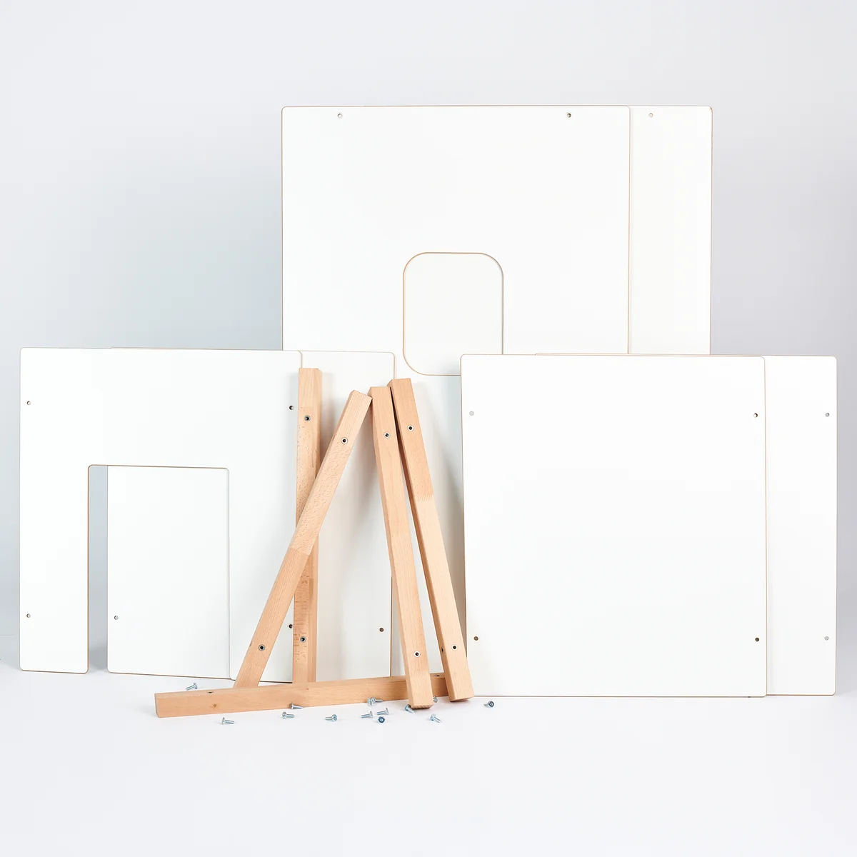 Hergestellt wird das wand Kinderspielhaus von Tojo aus beschichtetem MDF und naturbelassener Buche.