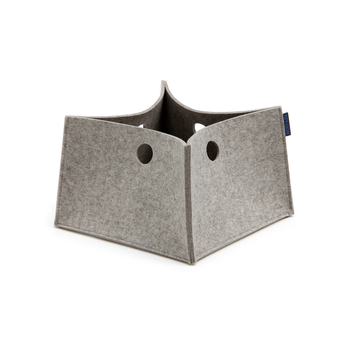 Die quadratische Big Box von Hey Sign erscheint in 5 mm starkem Wollfilz und ist daher besonders stabil. Zeitschriften, Decken, Freuerholz oder Kuscheltiere können in der formschönen Box ihren Platz finden und sind dort stilvoll verstaut. Vier Grifflöcher sorgen für einen leichten Transport der Box und verleihen ihr zusätzlich optische Akzente.