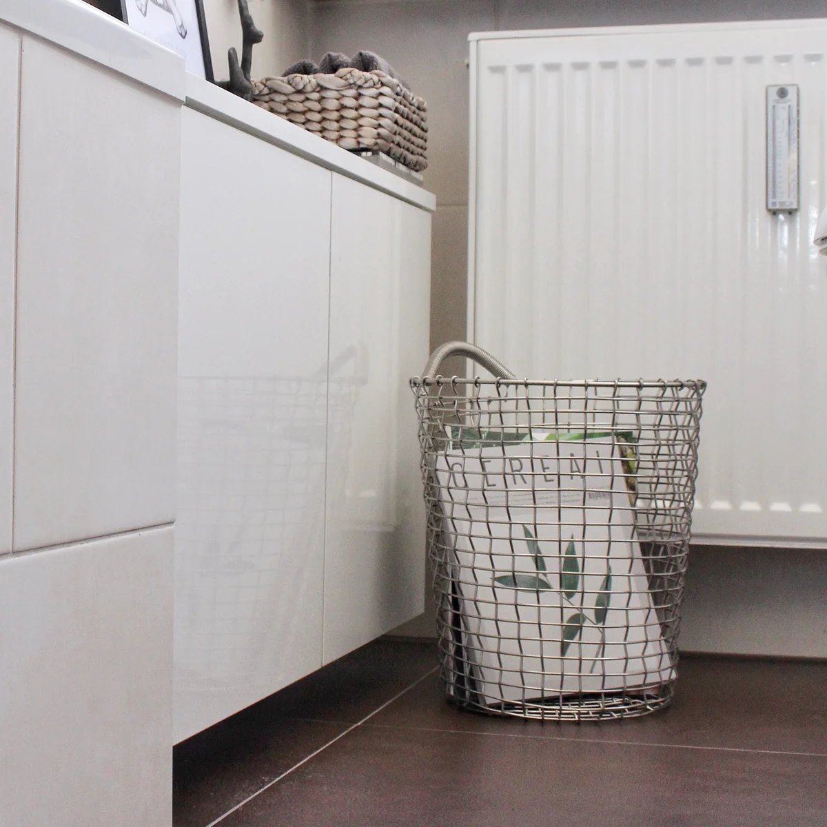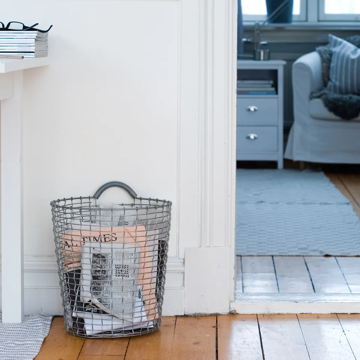 Der Bin 18 von Korbo ist ein praktischer Drahtkorb mit einem Volumen von 18 Litern. Dank Griff lässt sich der Korb einfach heben oder bei Bedarf mit passendem Haken an der Wand aufhängen. Ideal um Dinge von A wie Äpfel bis Z wie Zeitungen darin zu verstauen.