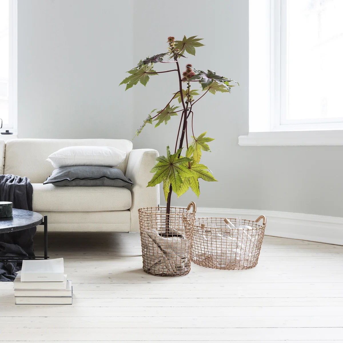 Die Körbe aus solidem Kupfer- oder Messingdraht hergestellt, erhalten über die Zeit - je nach Einsatzbereich, ausgesetzter Feuchtigkeit und anderen Einflüssen, eine individuelle Patina.