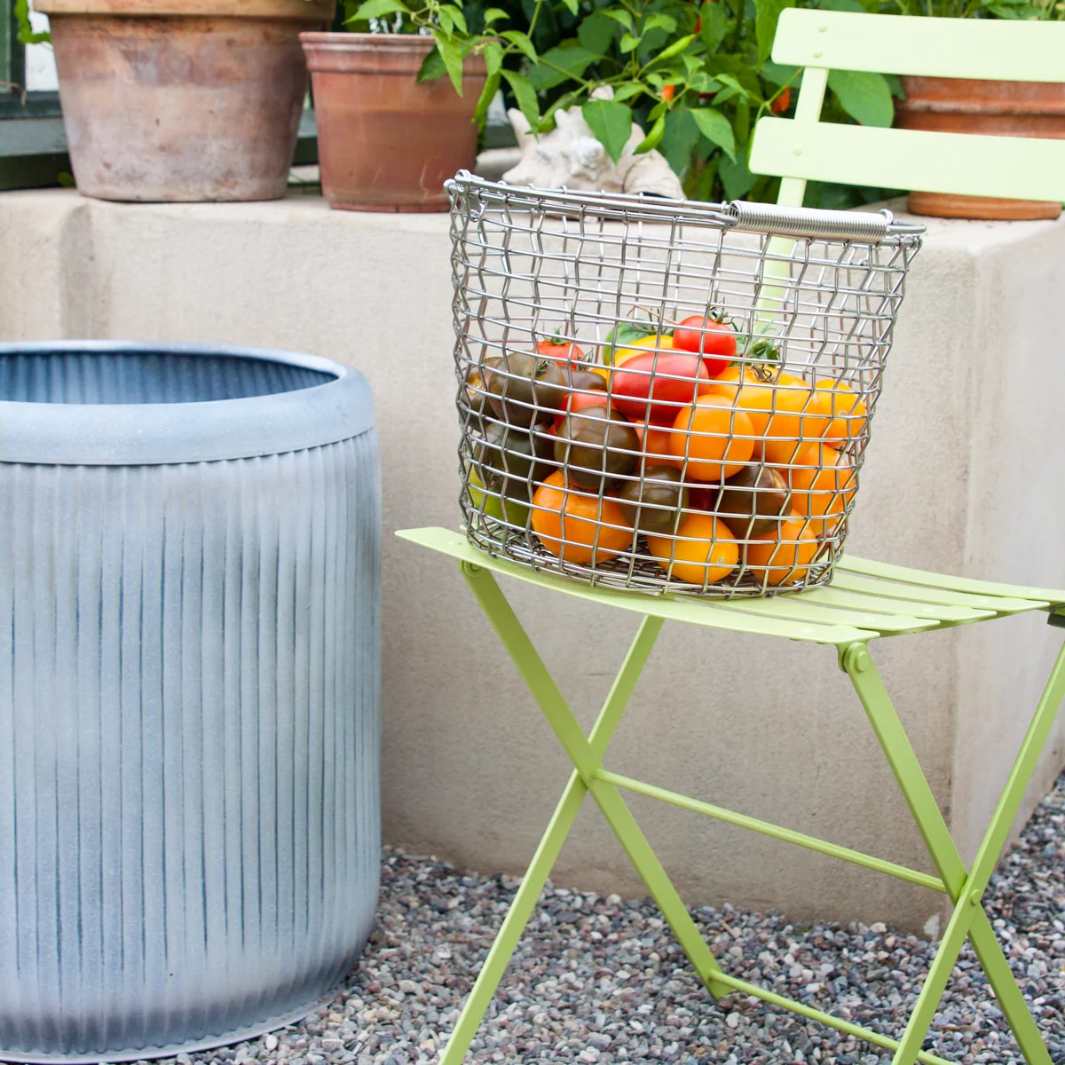 Die von Hand geflochtenen Körbe werden dabei alle mit exakt der gleichen Technik gefertigt. Diese einzigartige Konstruktion besteht aus einem einzelnen langen Draht der, ganz ohne den Einsatz von Schweissgeräten, handgeflochten wird. Das ist auch der Grund, weshalb die Körbe so langlebig sind - es gibt einfach keine Teile des Korbes, die auseinander fallen können. Stattet man den Bucket 24 mit der Planting Bag Innenabdeckung aus, ist er neben den üblichen Aufbewahrungszwecken, auch als Blumentopf mit interessanter Optik zu gebrauchen. Der Drahtkorb eignet sich auch hervorragend als Lagerplatz für Flaschen, da nichts zu kippen droht.