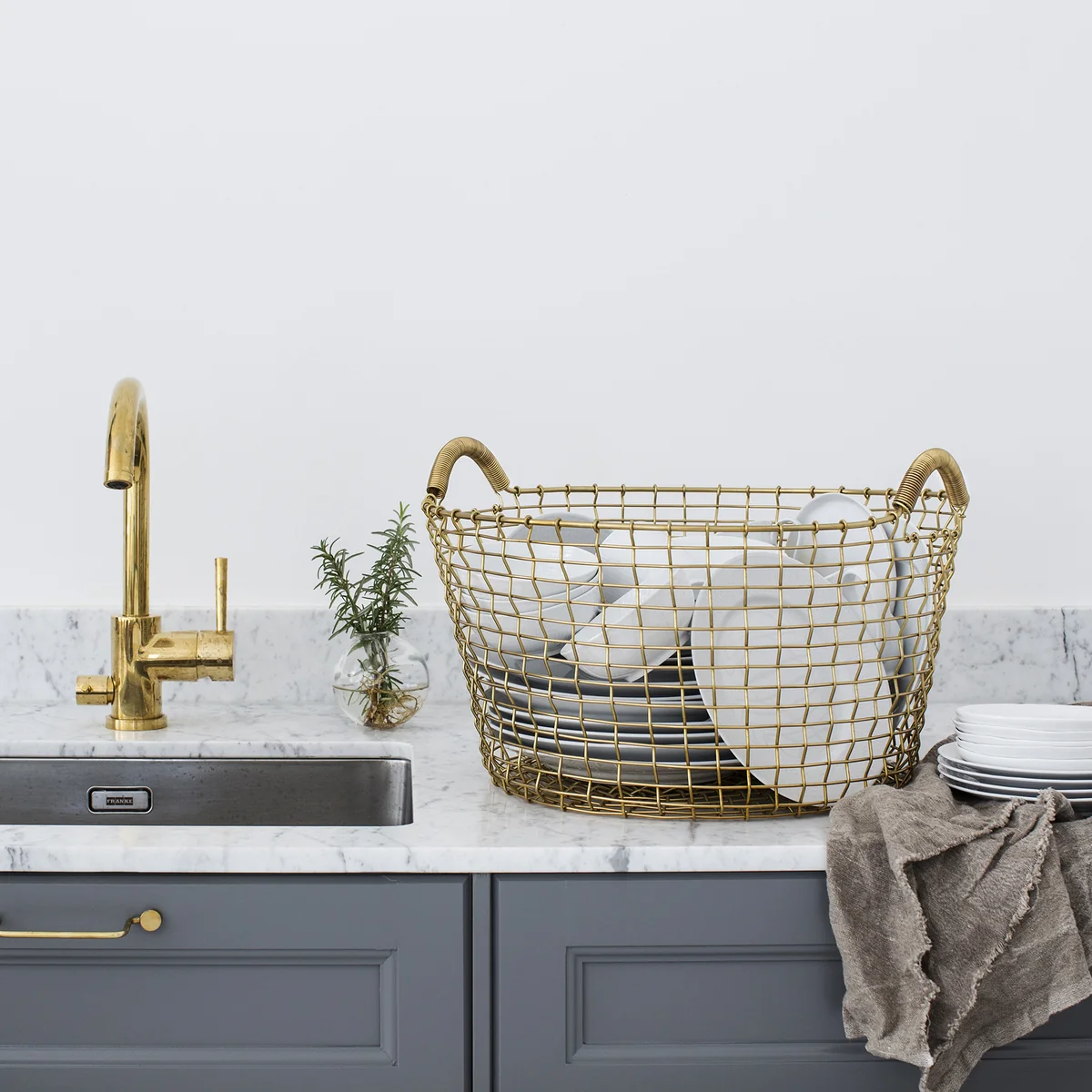 Der Classic 35 ist ein vielseitiger Drahtkorb mit einem Volumen von 35 Litern. Aus unterschiedlichen Drähten: Edelstahl, Stahl, Kupfer oder Messing gefertigt begeistert der Korb mit einem robusten und zugleich elegantem Charme, der sowohl drinnen wie draussen bezaubert. Dank rostfreier Materialien lässt sich der Korb nicht nur zur Aufbewahrung von Papier, Glas, Obst und Gemüse oder Spielzeug verwenden, sondern auch als Pflanzkorb für den Garten oder Balkon oder für verschiedenste andere Dinge.
